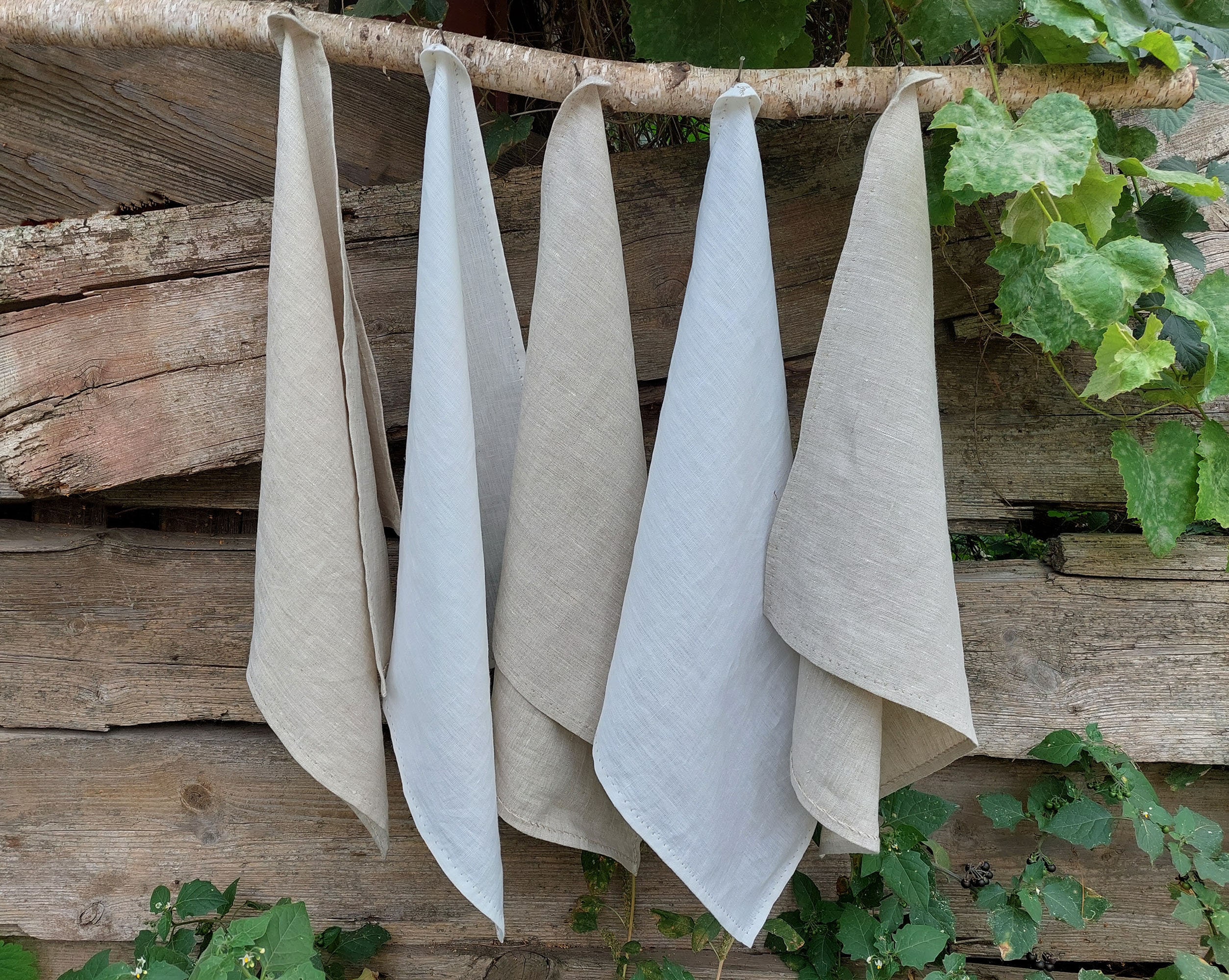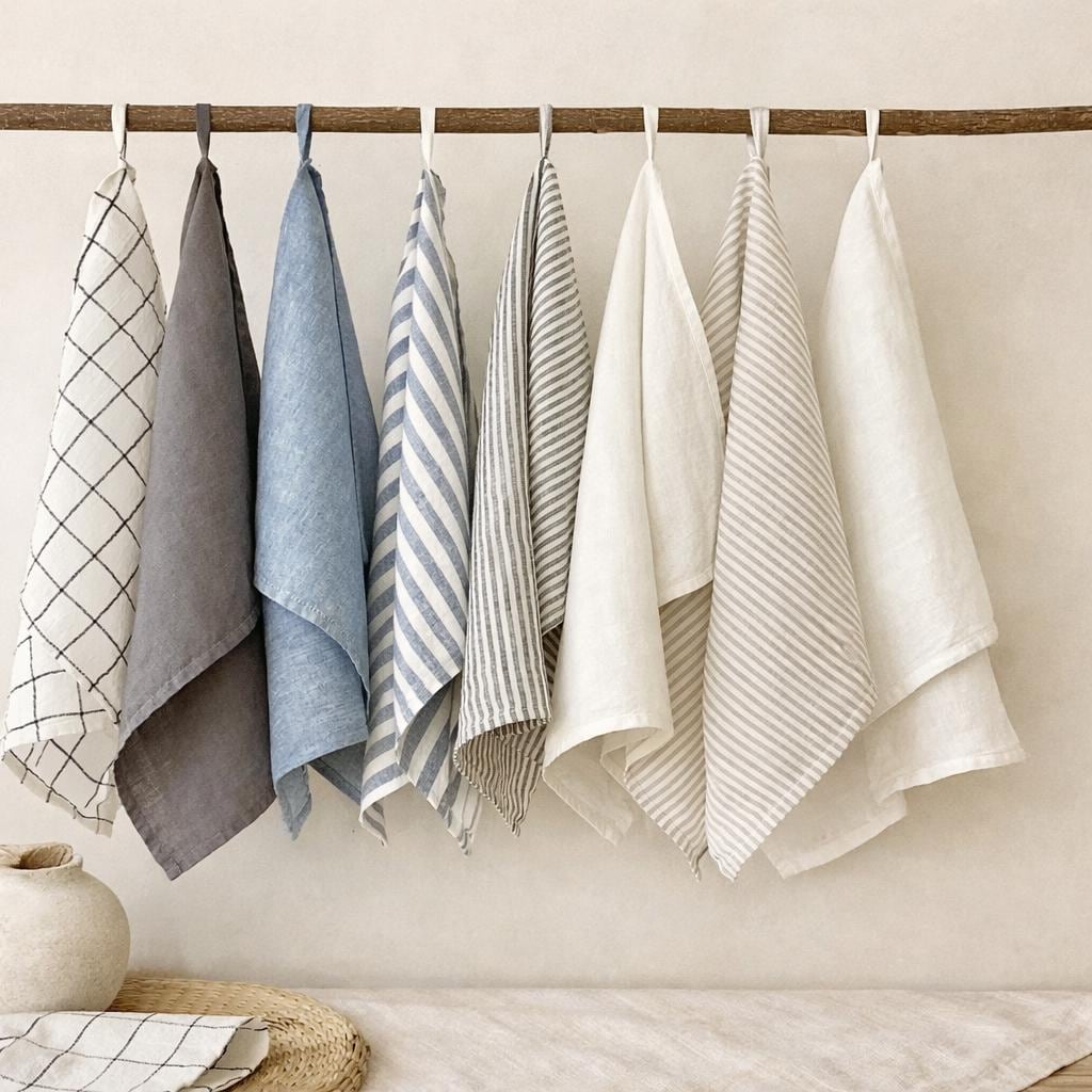 "Premium linen tea towels made from natural stonewashed linen. Highly absorbent, durable, and q...