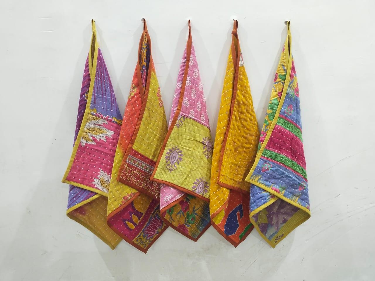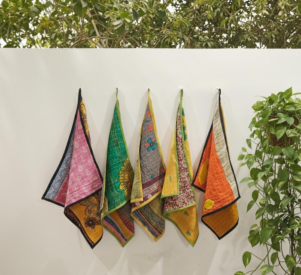 Handmade Kantha Kitchen Towel, Indian Kantha Quilt Tea Towel, Cotton Kantha Towel Cloth Napkin Set F...