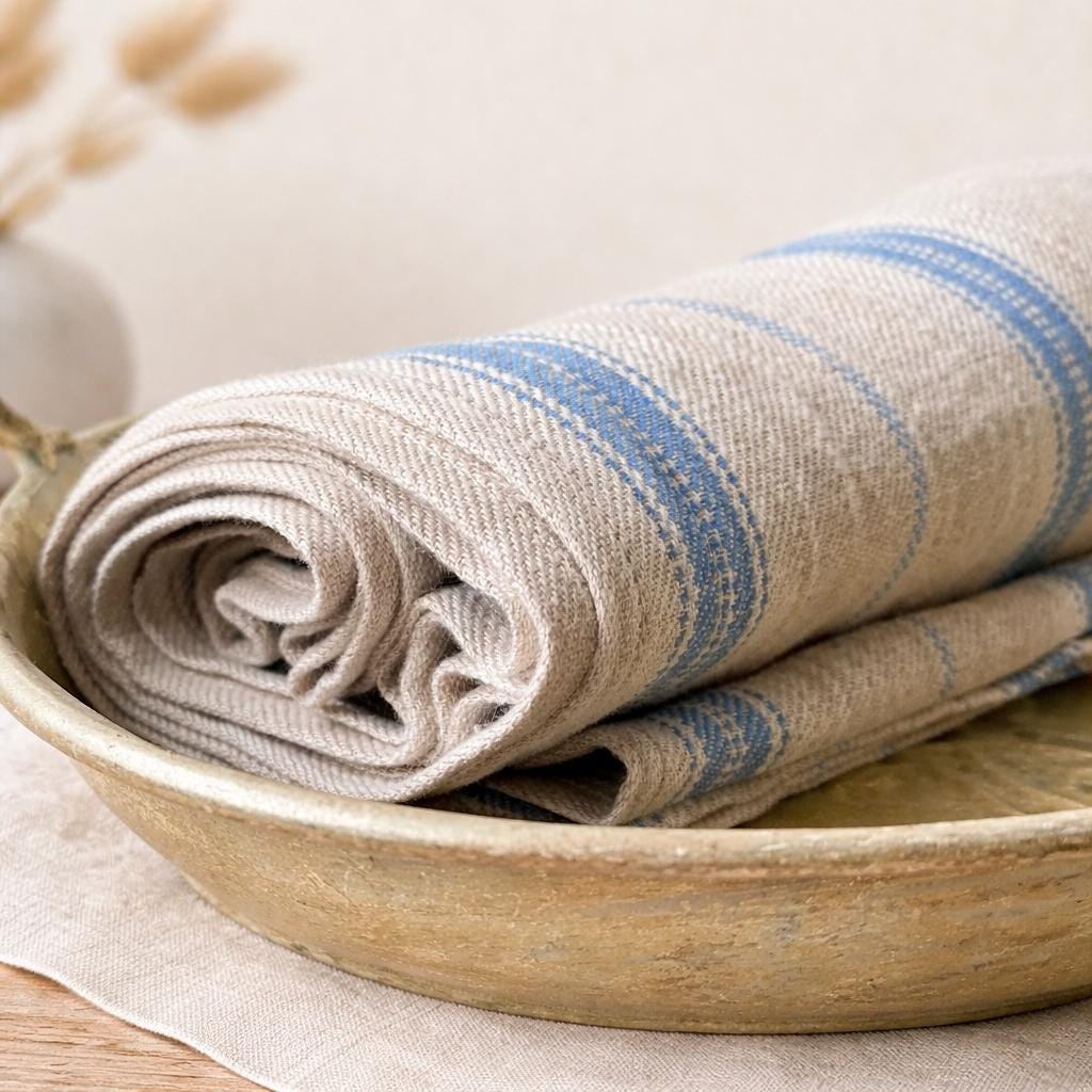 French Style Linen Tea Towels Set: Striped Kitchen Towels, Handmade...