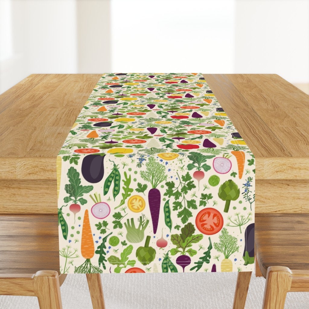 Seasonal Vegetable Table Runner - Herb Garden Vegetable Garden Bota...
