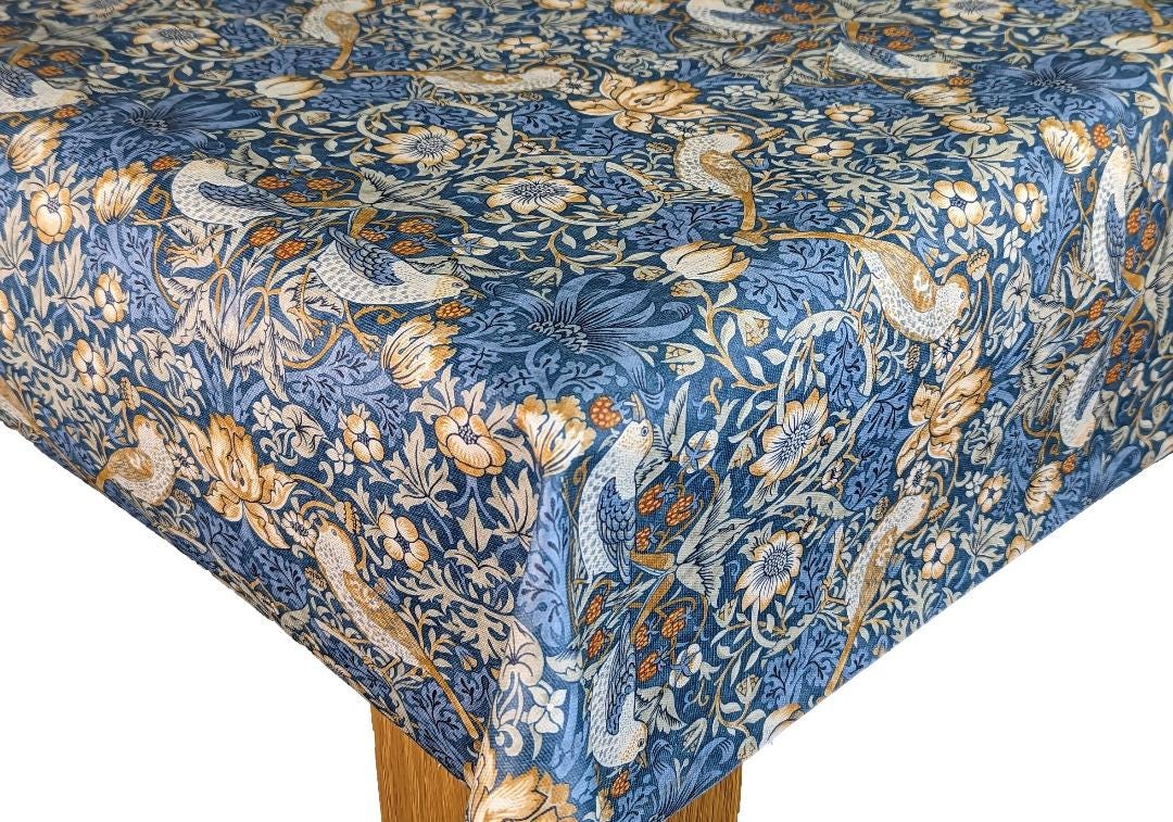 "William Morris \"Strawberry Thief\" Denim Blue and Spice Oilcloth - Iconic Design fo...