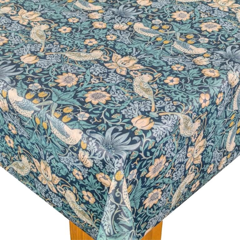 "William Morris \"Strawberry Thief\" Teal Oilcloth - Iconic Design for Elegant Living...