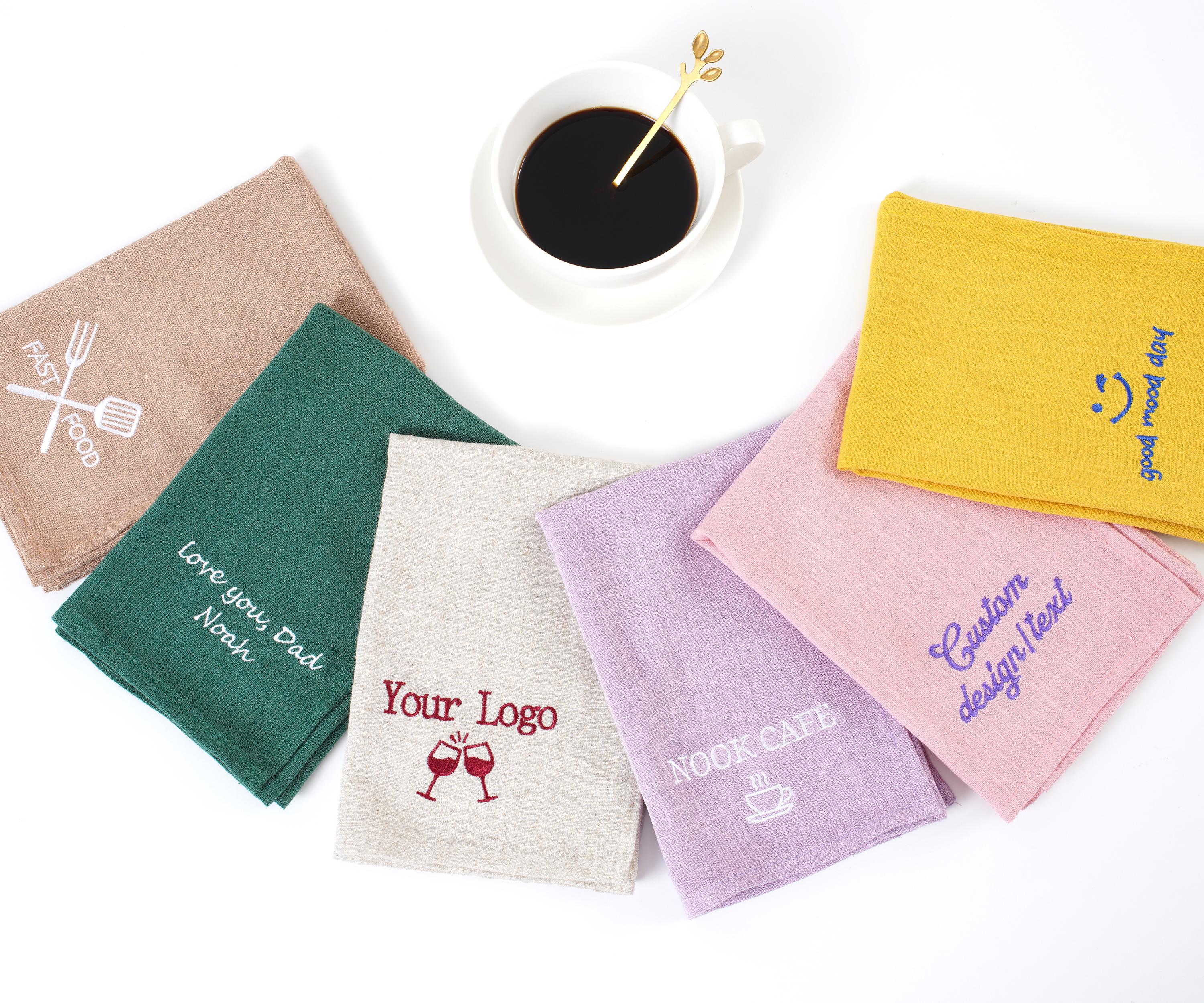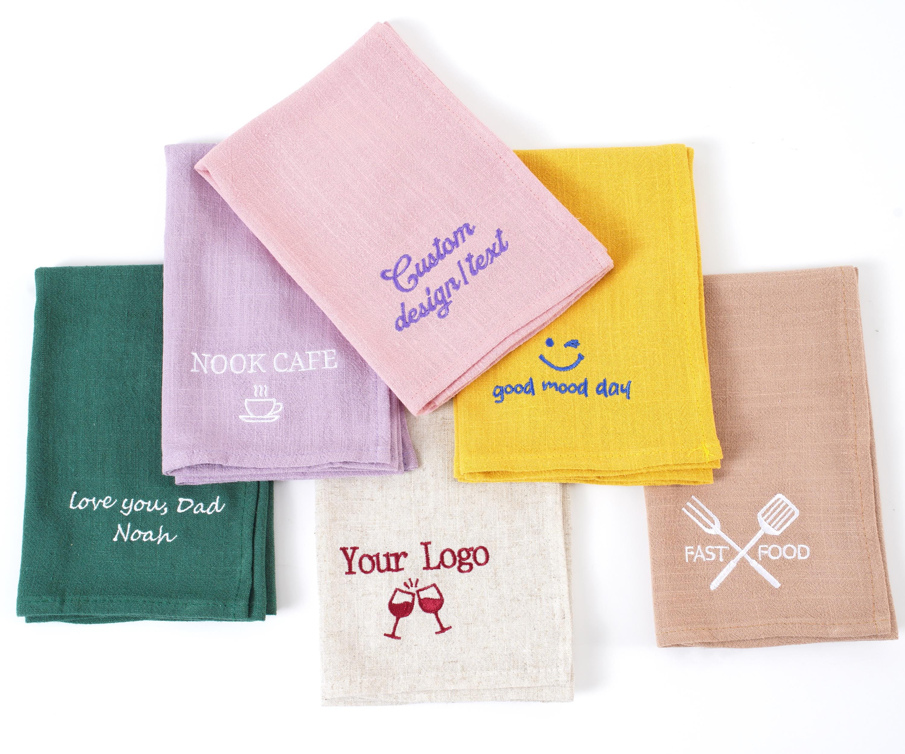 Custom Embroidery Linen tea towel,with your Text logo tea towel,Per...