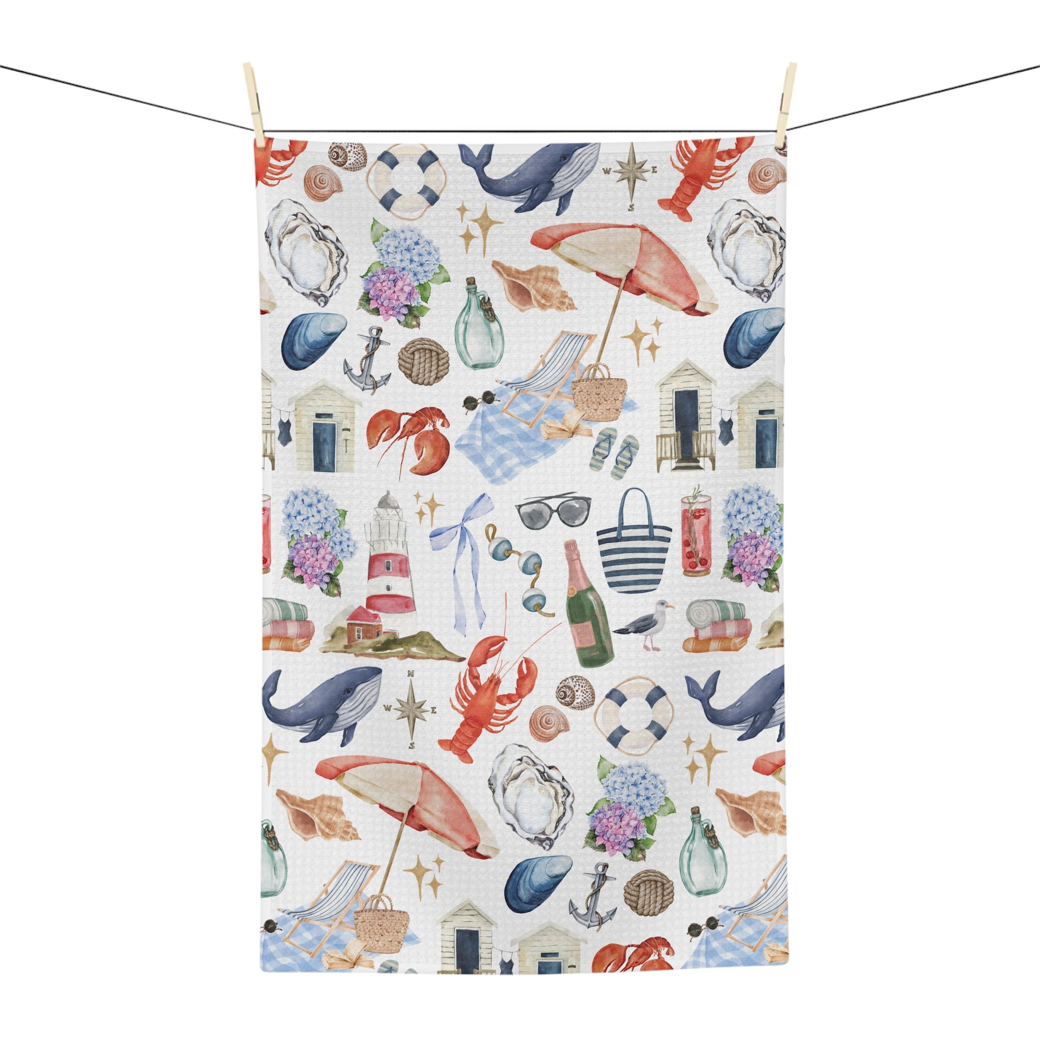 Coastal Tea Dish Towel | Watercolor Cape Cod Tea Towel Nantucket Towel Hamptons Gift Classic Coastal...