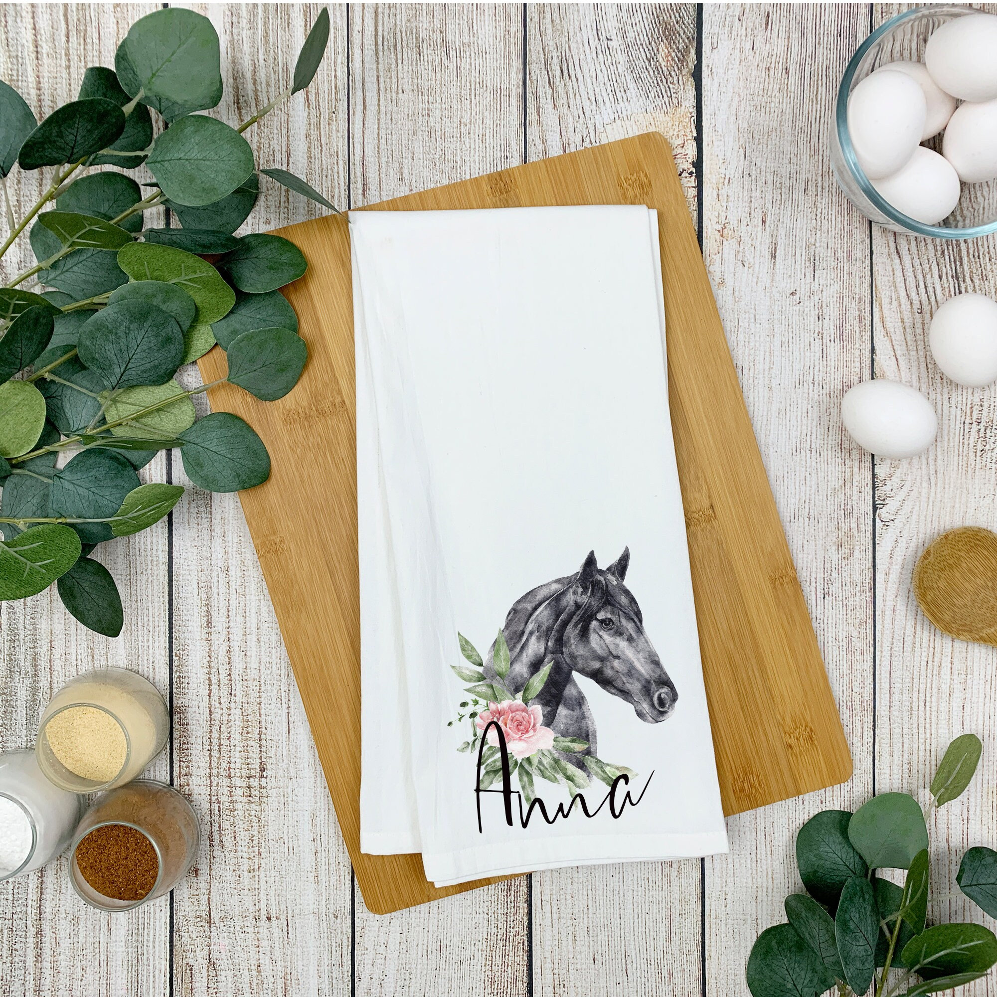 Personalised Tea Towel, Horse Print Tea Towel, 100% Cotton Tea Towe...