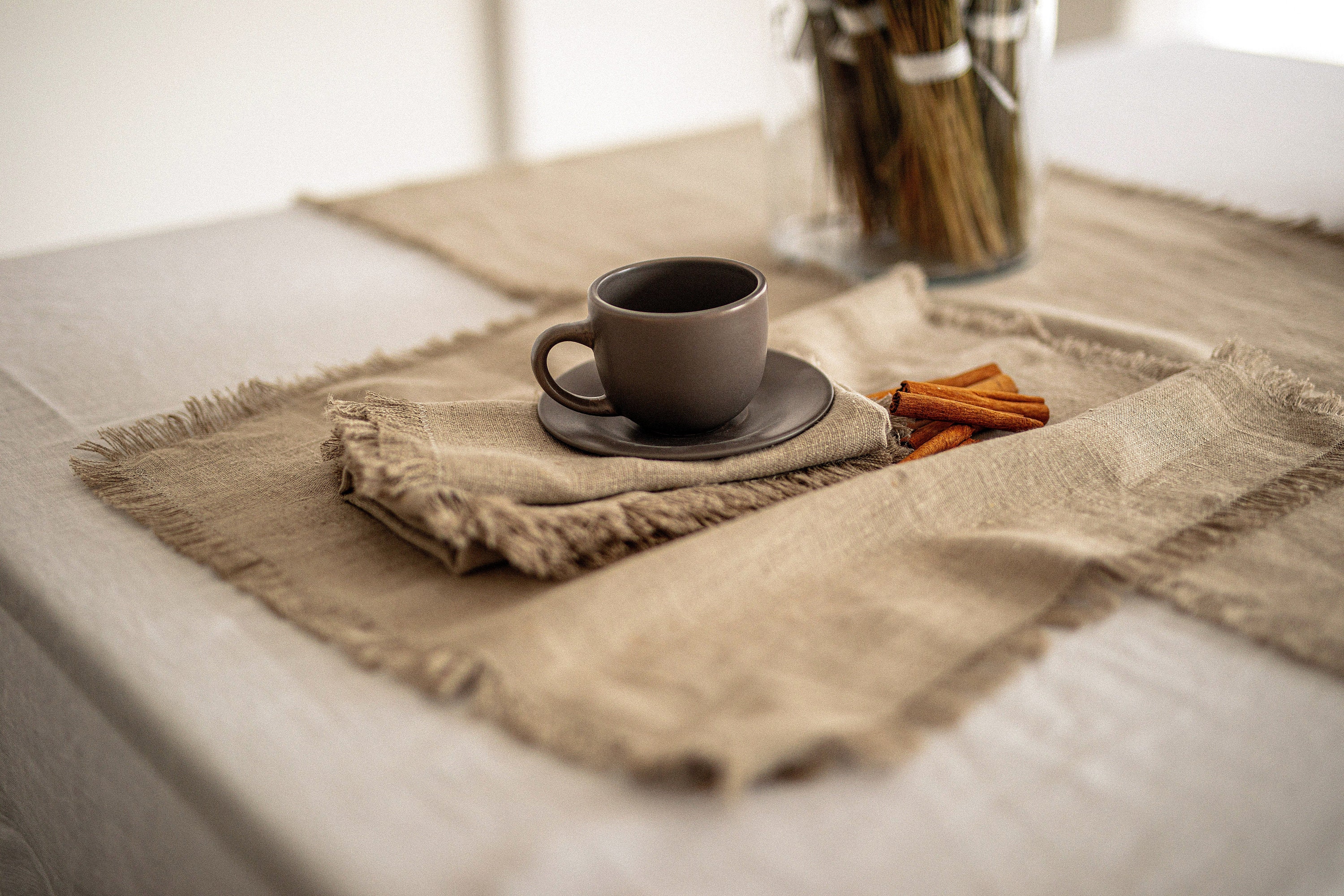 "LINEN NAPKIN SET Heavy rustic linen napkins with a raw edges You will have simple design and p...