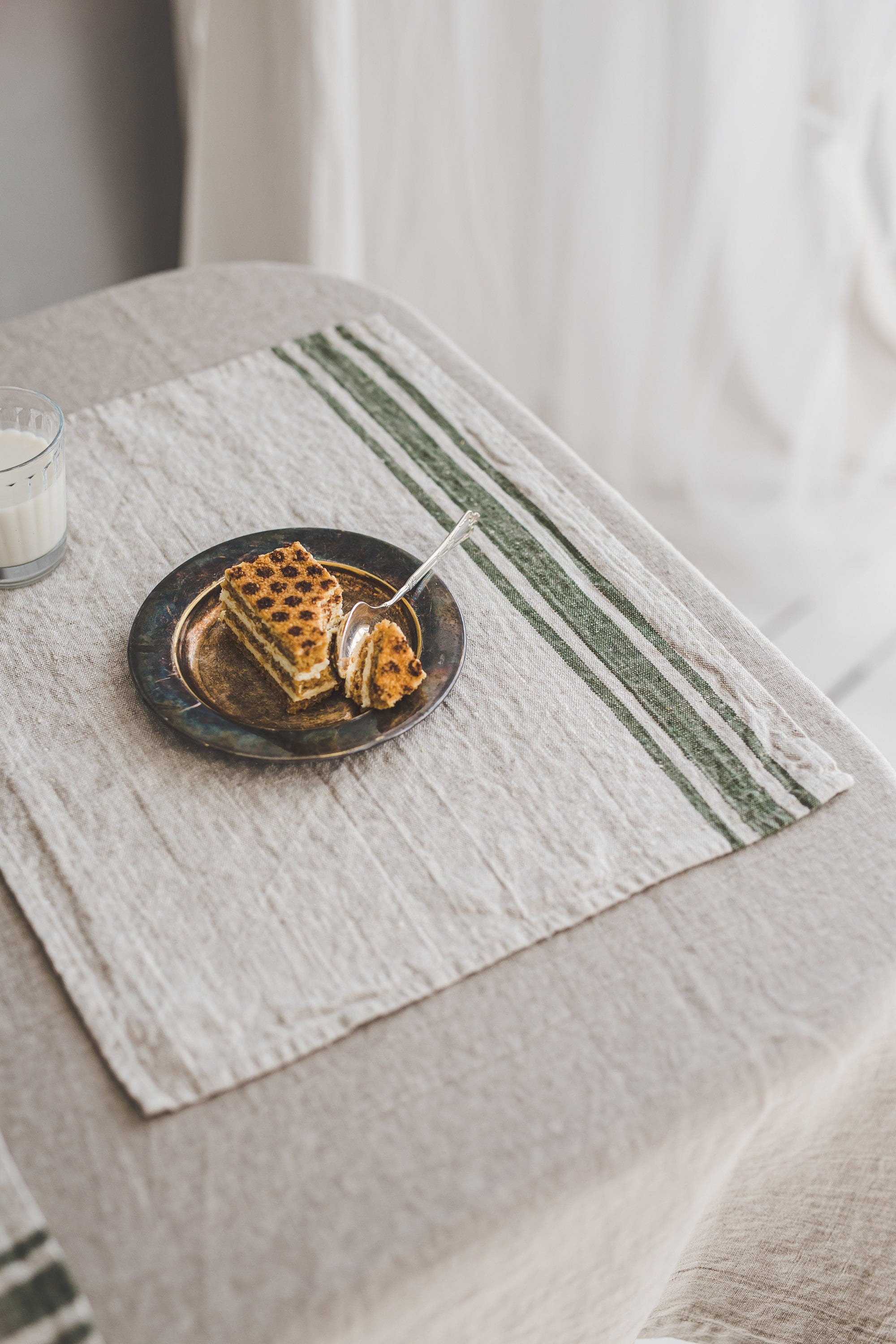 Linen placemats, Thick washed linen placemats in various colors, Vi...