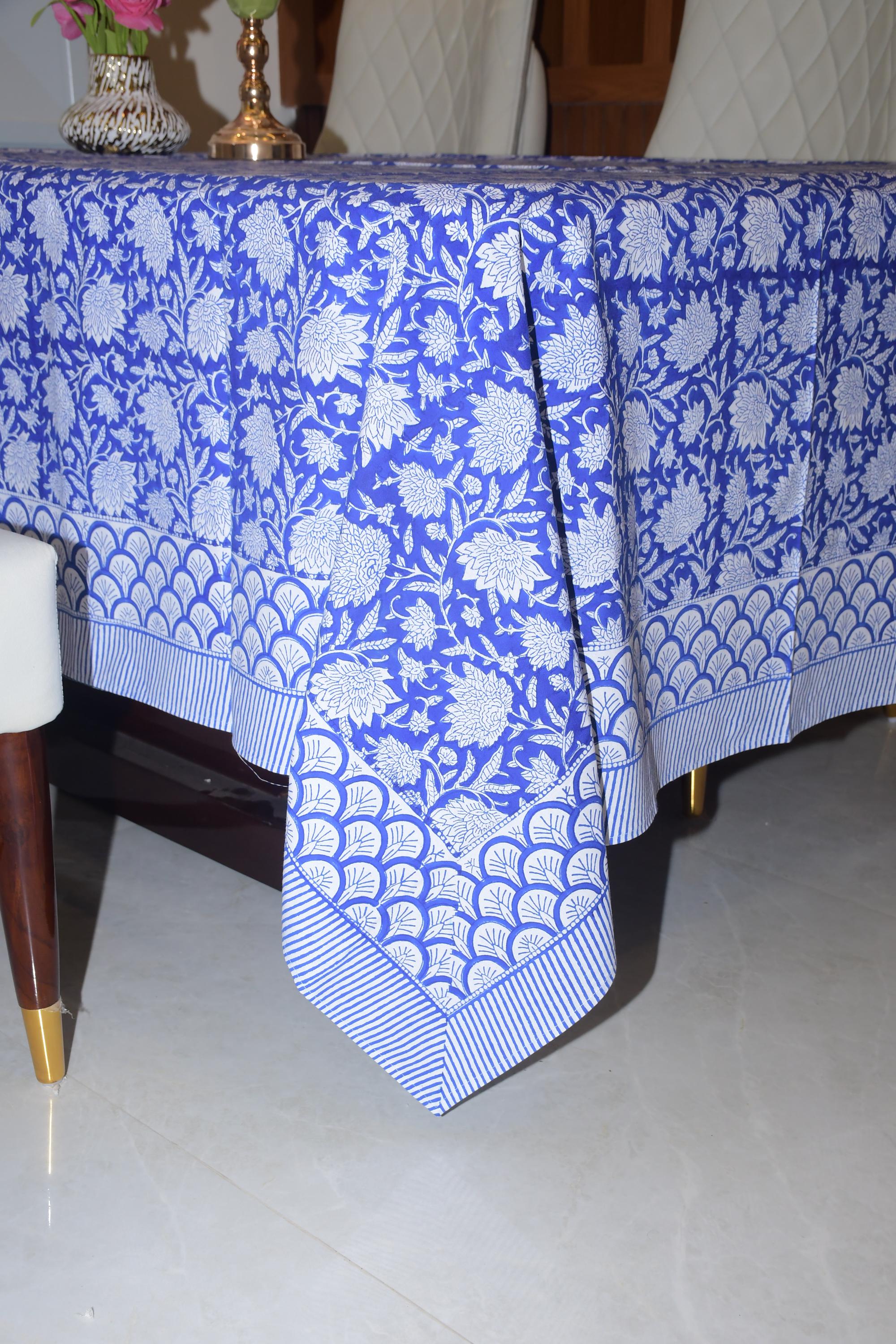 Tablecloth, Blue, White Floral Indian Hand Block Printed cloth Tabl...