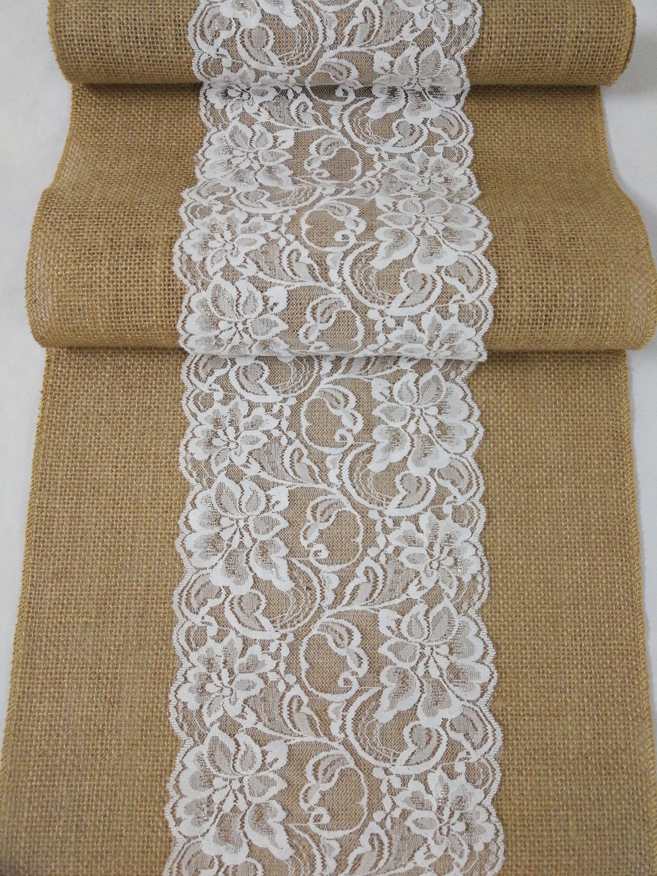 White lace Table Runner,Burlap Table Runner,Holiday Table Runner We...
