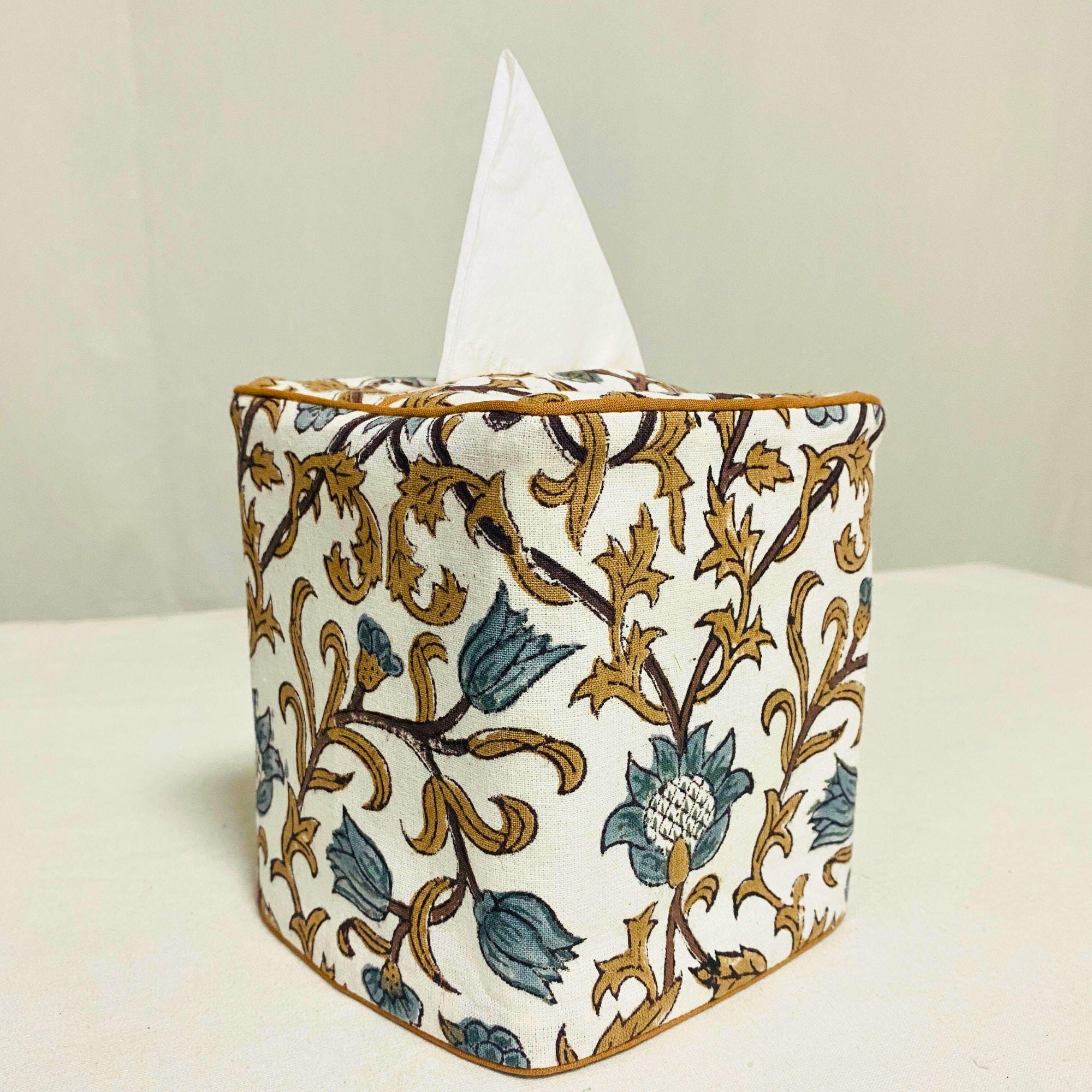 Latte Brown Hand Block Printed Pipping Tissue Box Cover Indian Hand...