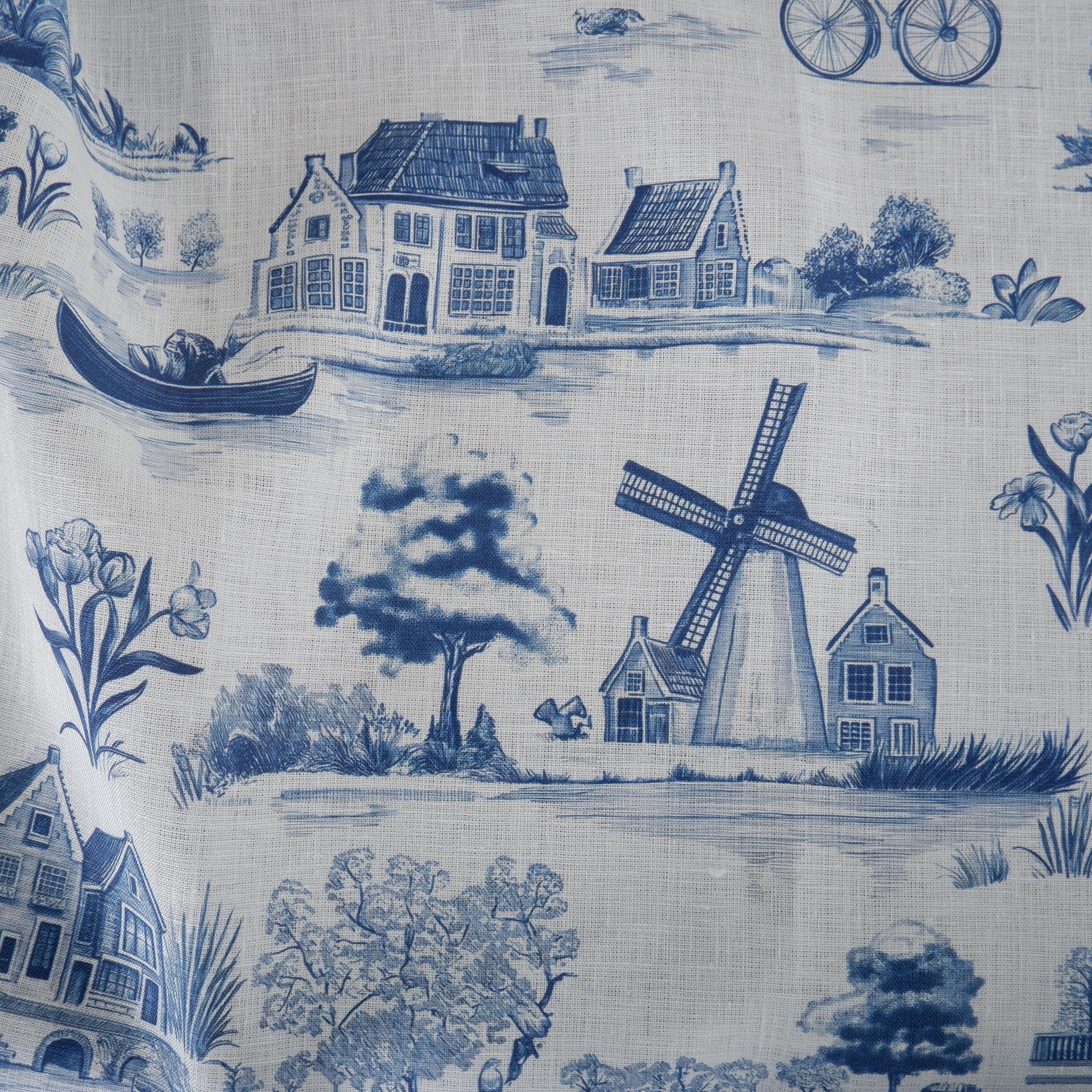 100% linen Printed on 100% linen print pattern with Holand Delft print With a landscape pattern desi...