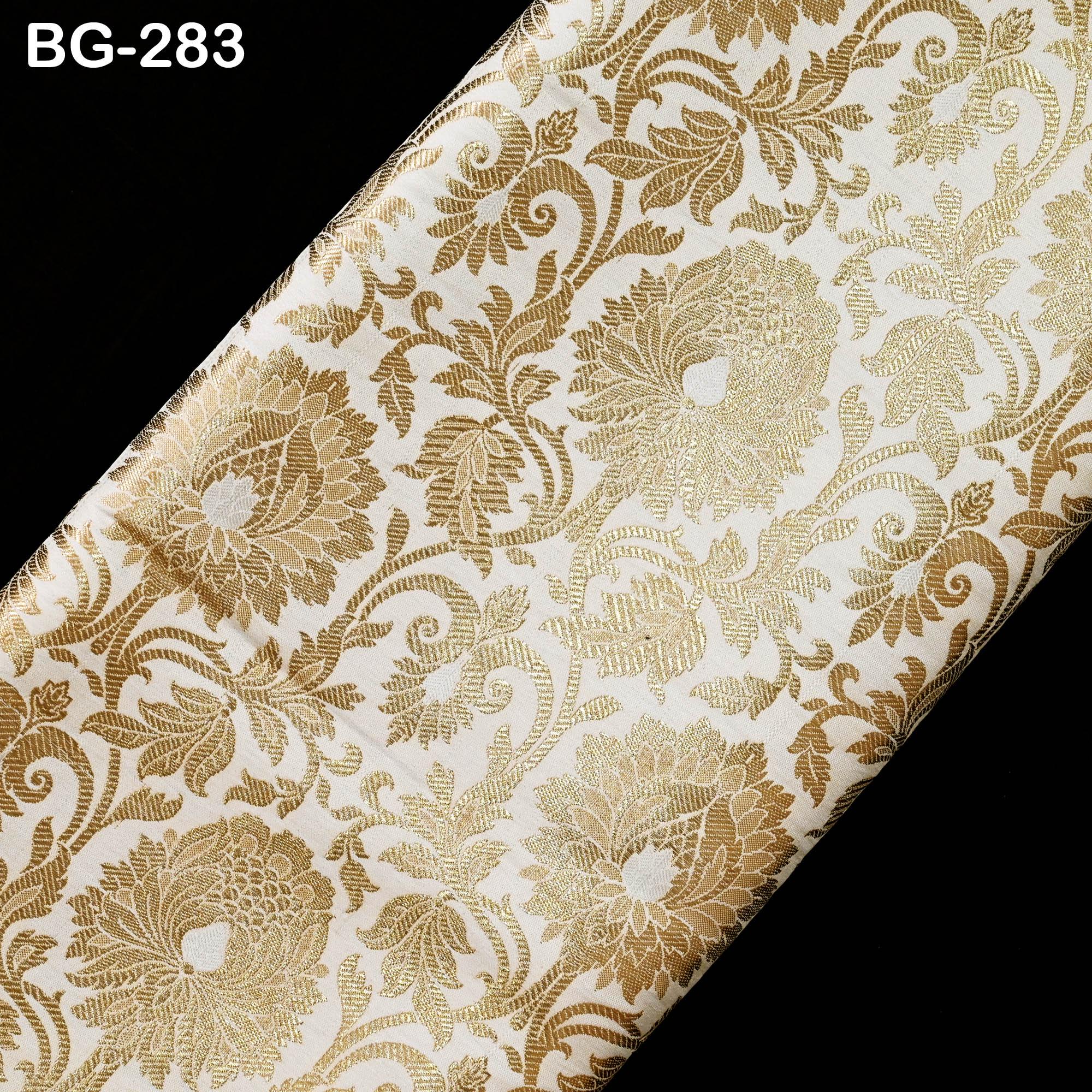 "Brocade Fabric in Ivory Gold Weaving Banaras Brocade Wedding Dress Fabric Banarasi Blended Sil...