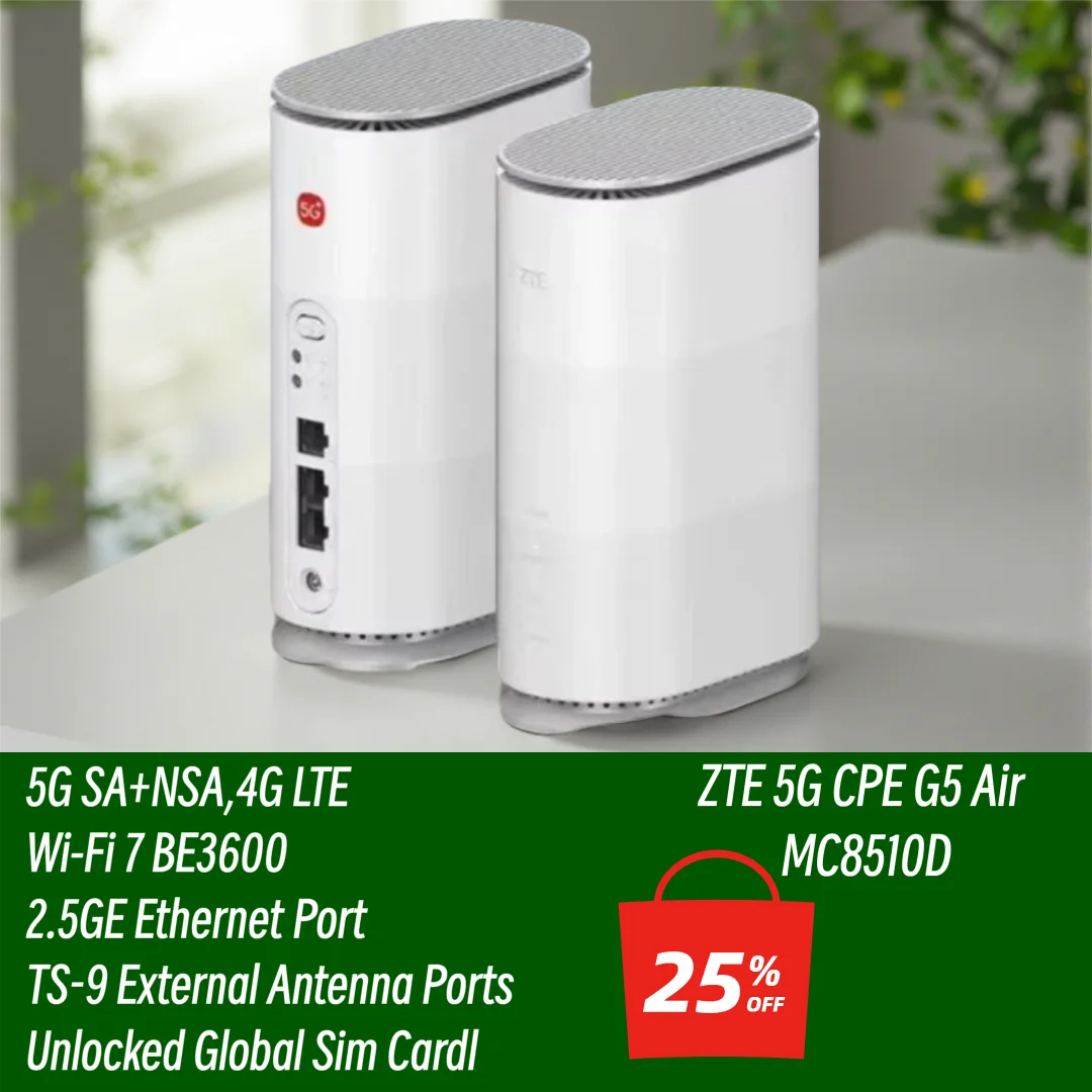 Unlocked ZTE G5 Air 5G WiFi 7 CPE MC8510D Router BE3600 2.5G RJ45 Port NFC 5G NR 4G LTE Cat19 Sim Ca...