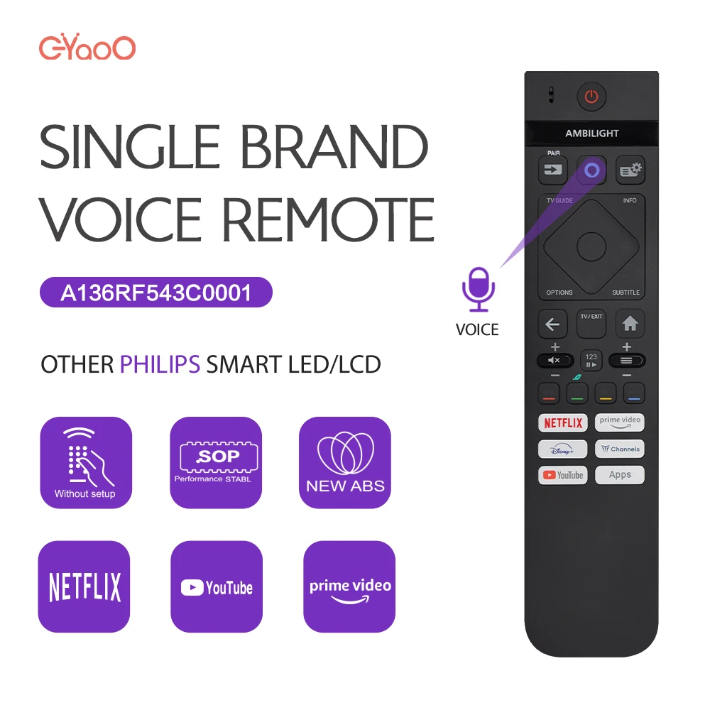 Ambilight Voice TV Remote Control For Philips Compatible With 43PUS...