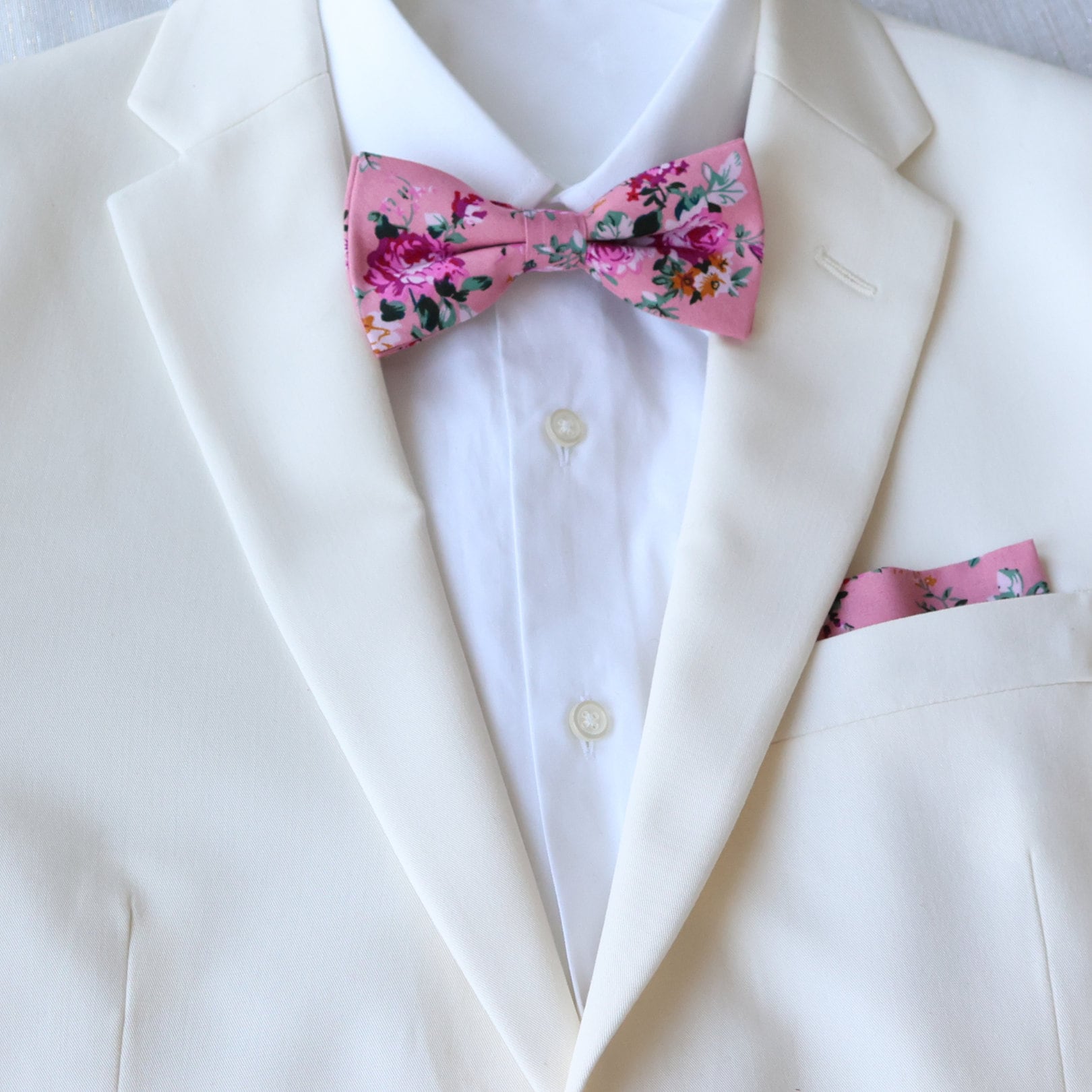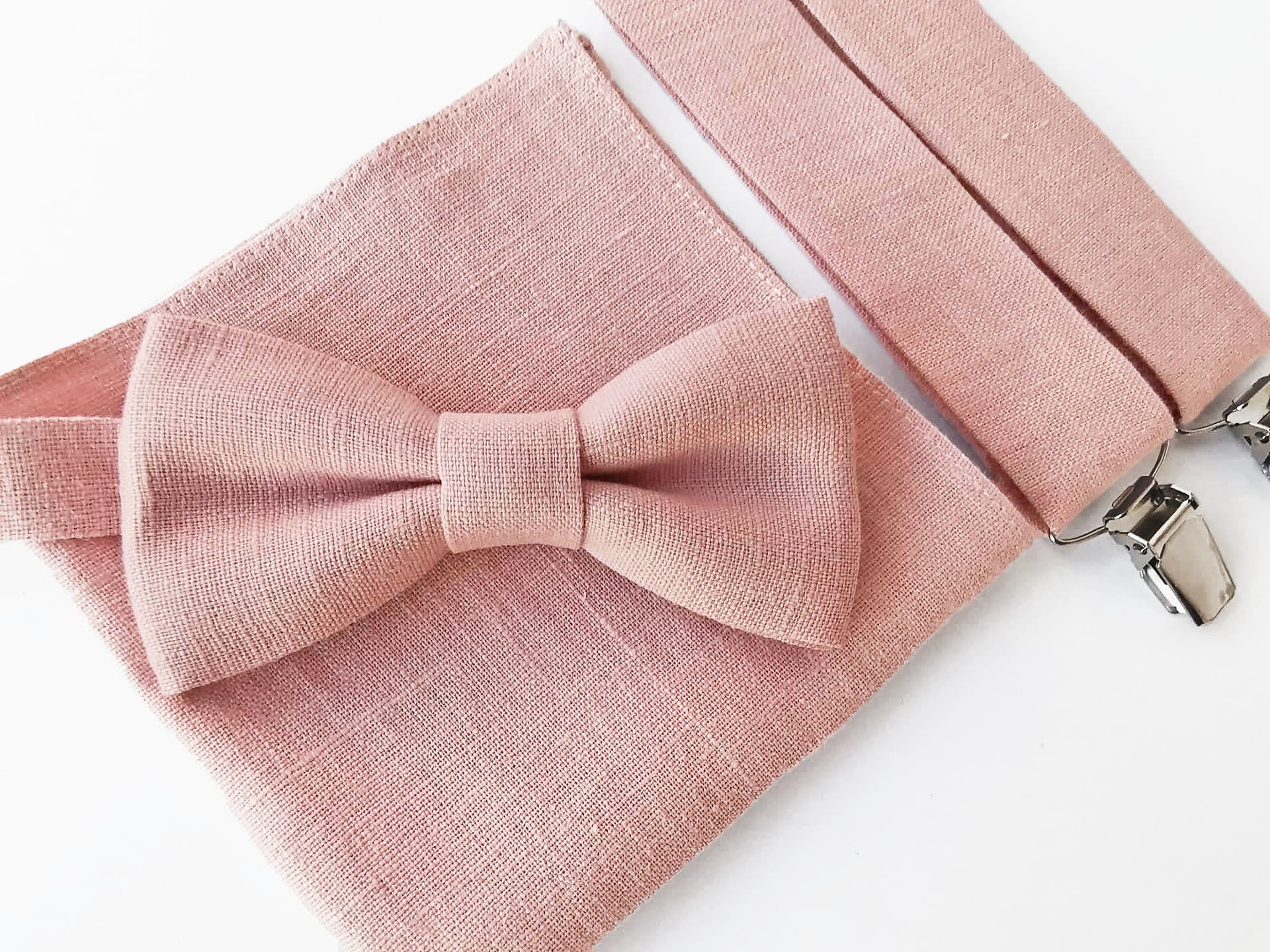 Pale Pink Bow Tie / Pale Pink Linen Bowtie / Pale Pink Pocket Squar...