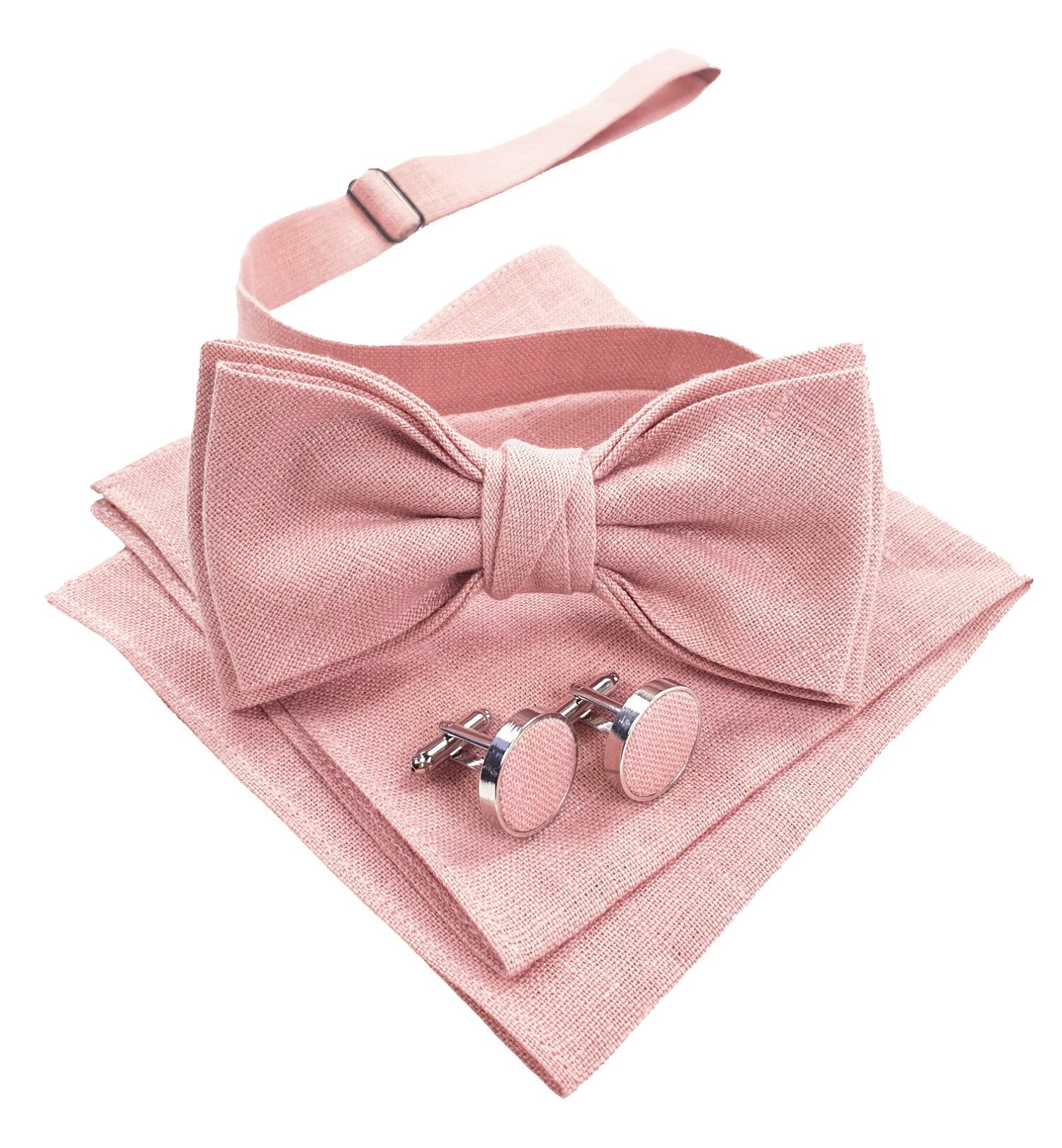 Blush Pink Bow Tie / Blush Pink Cufflinks / Blush Pink Pocket Squar...