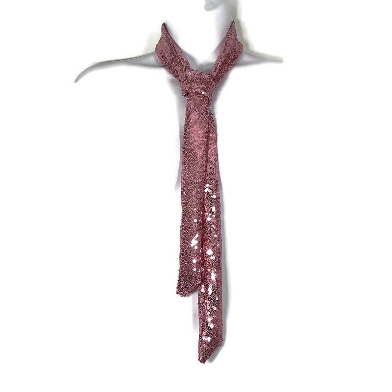 "Pink Skinny Tie Pink Sequin Necktie Pink Skinny Ties Women Strawberry Pink Necktie Sequin Neck...