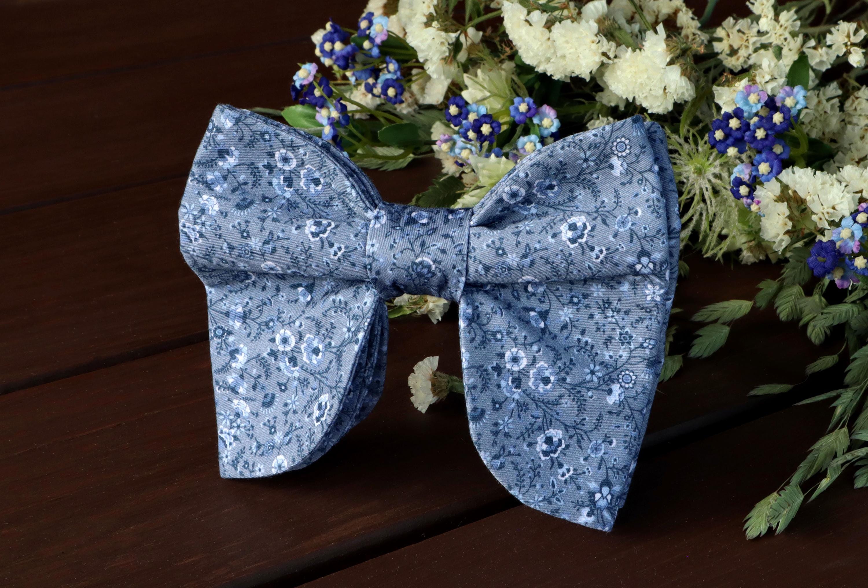 Butterfly Bow Tie Floral DUSTY BLUE - Wedding Pre-Tied Bowtie Butte...