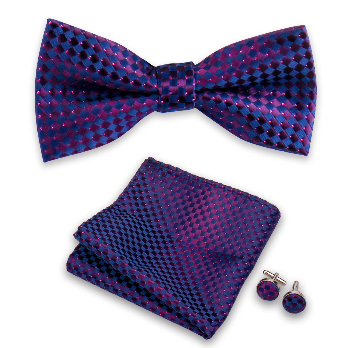 Elegant Adjustable Pre-tied Bow Ties for Men Wedding Prom Tuxedo Accessories Bowknot Handkerchief Cu...