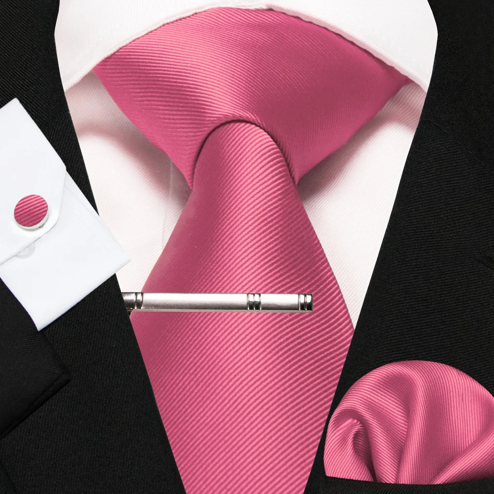 Wholesale Solid Rose Pink Silk Tie Set with Pocket Square and Hanky...