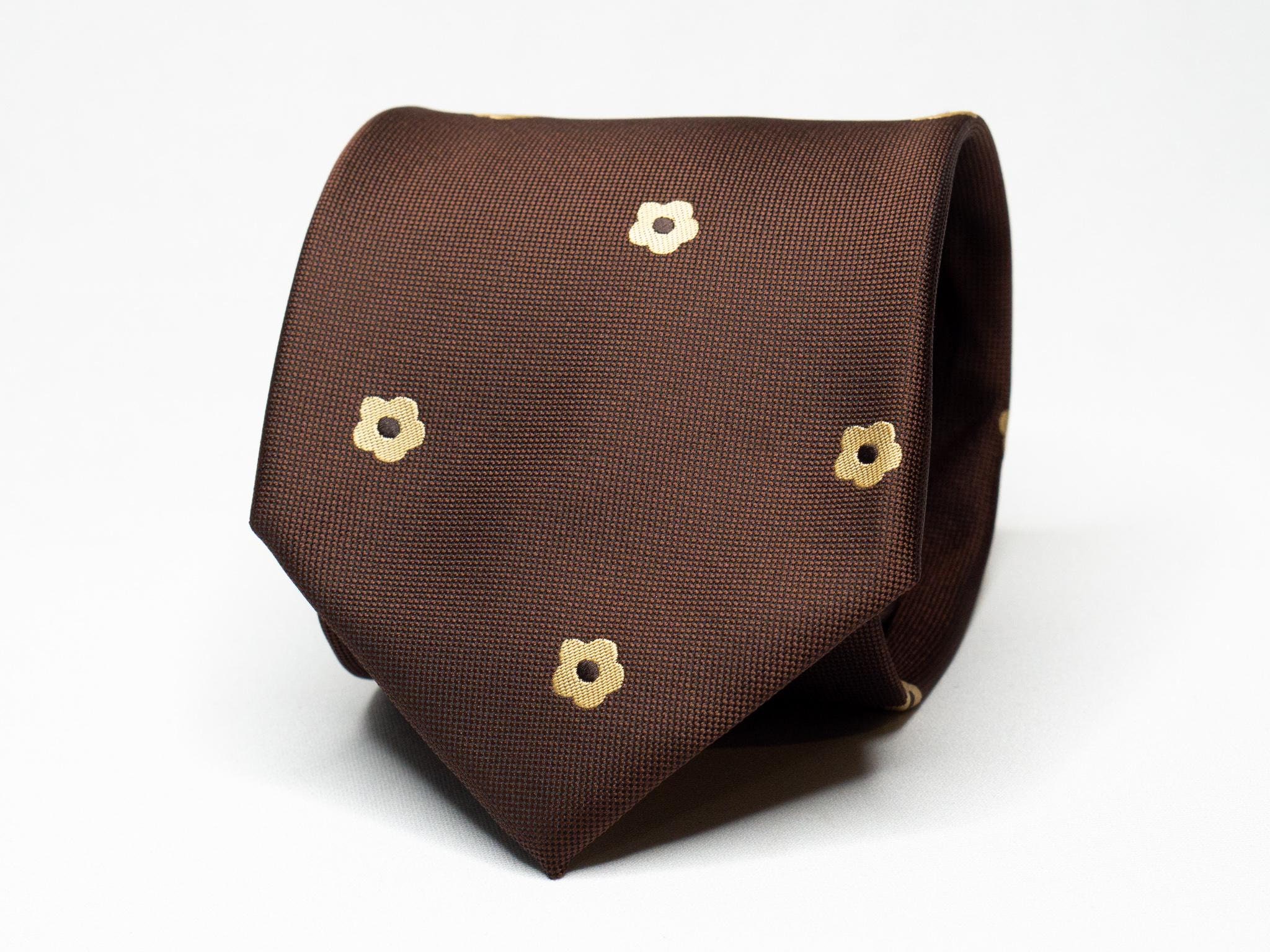 A brown tie with a subtle gold flower pattern! Size: 8cm wide (3.15in) Color: Brown Pattern: Floral ...