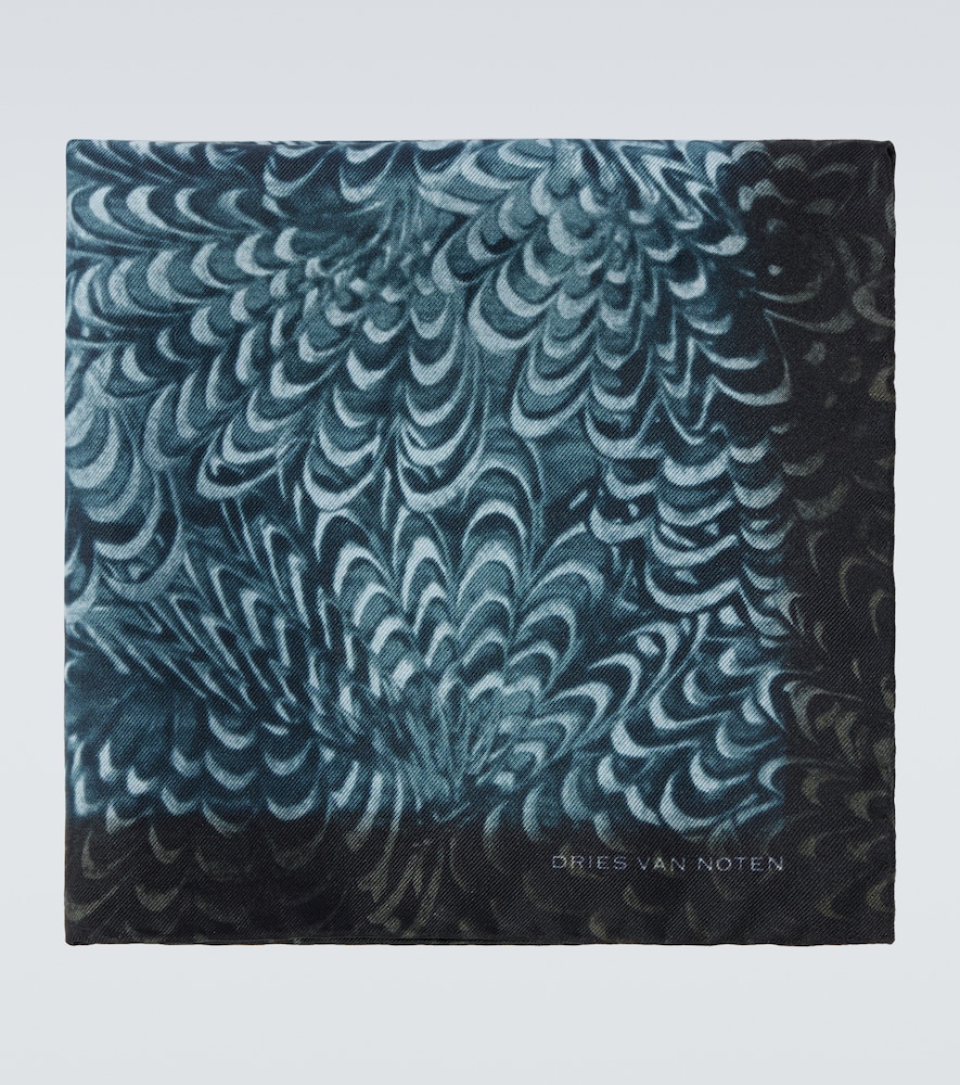 Dries Van Noten Men, Printed silk pocket square, Brown, One Size, T...