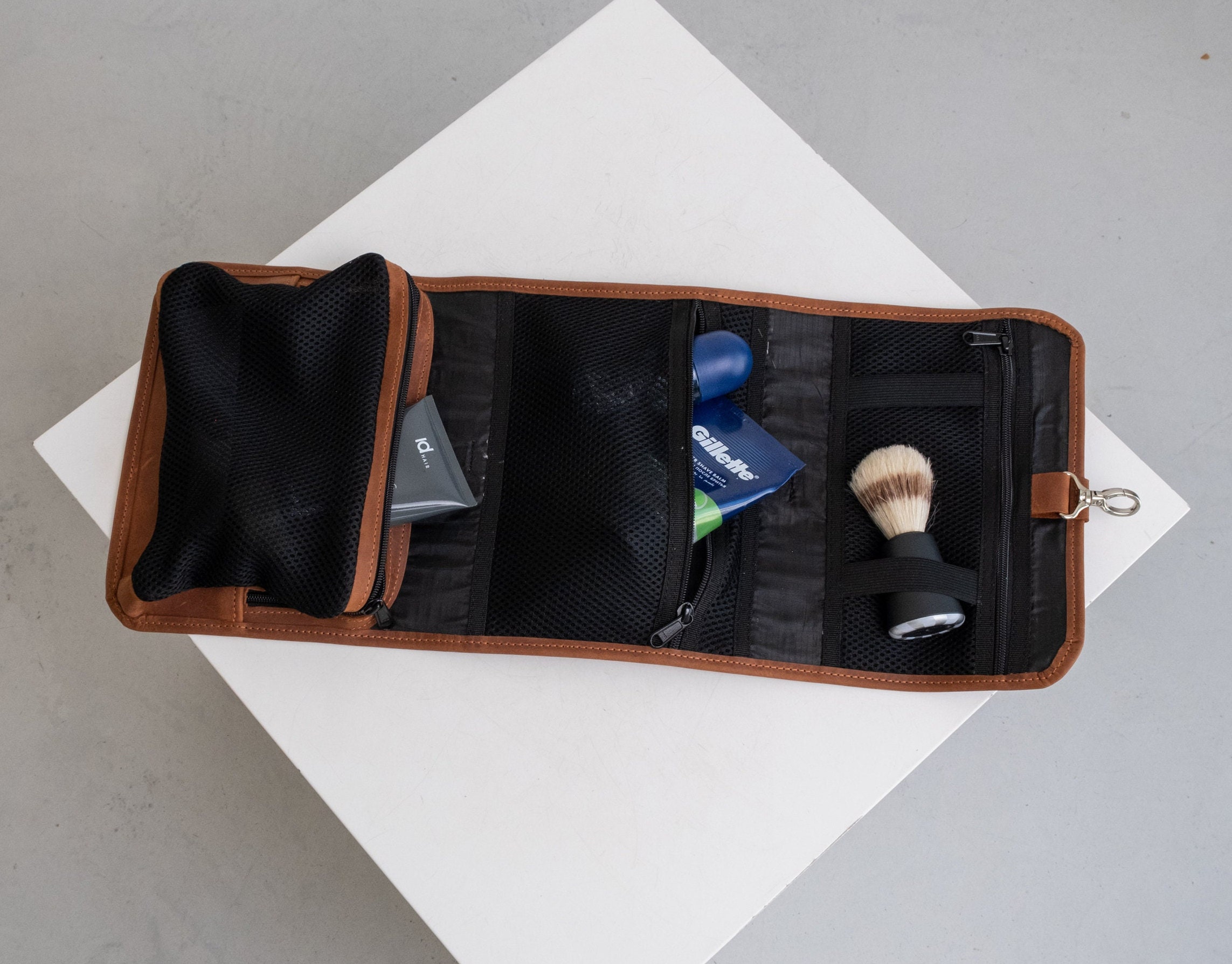 Leather hanging toiletry bag, Hanging wash bag, Men's shaving kit, ...