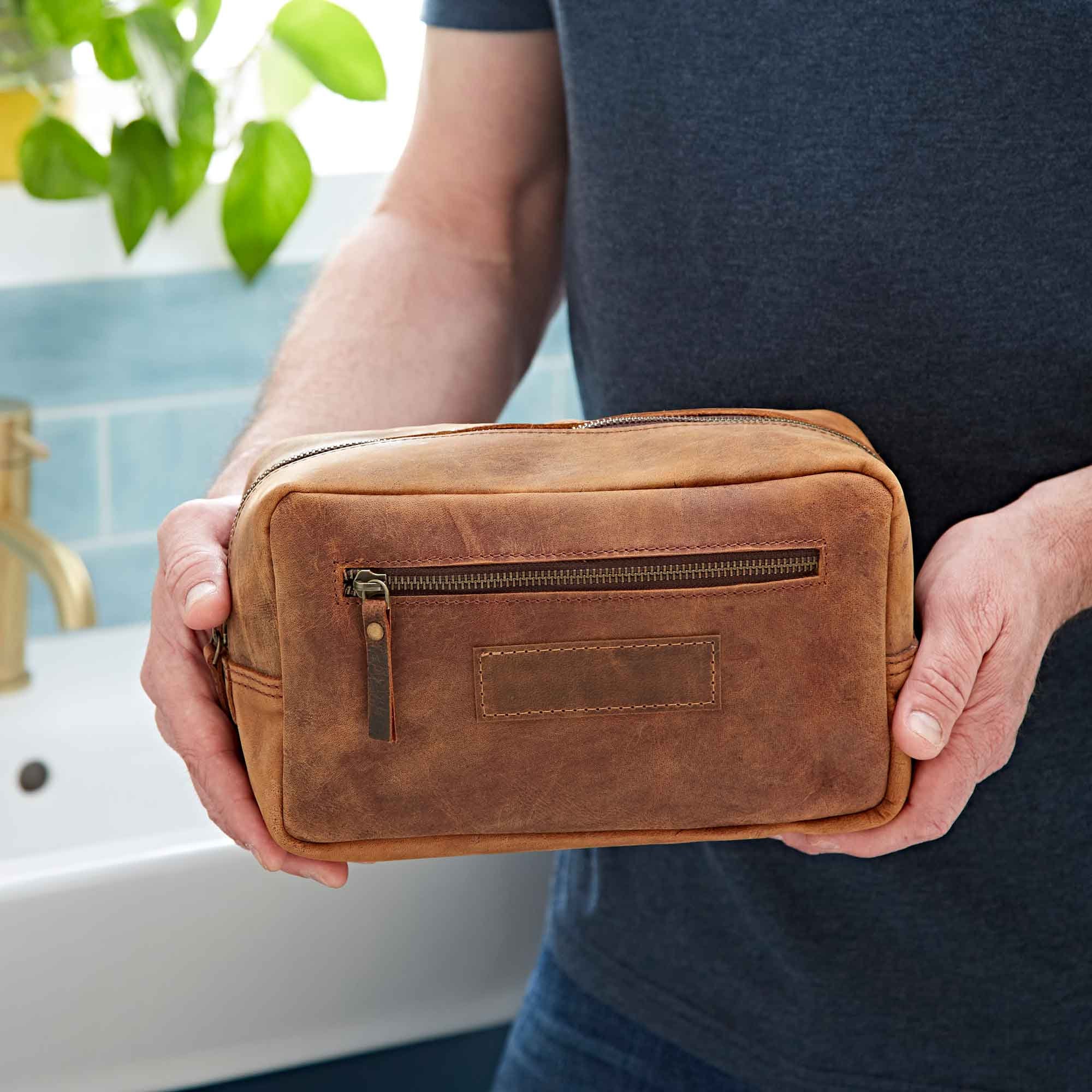Personalised Leather Wash Bag for Him | Handmade Men's Toiletry Bag...