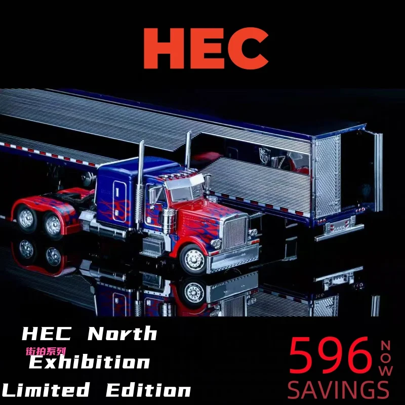 2025 HEC 1:64 North Exhibition Limited Edition 596 Peterbilt Optimus Prime Truck Alloy Die-cast Mini...