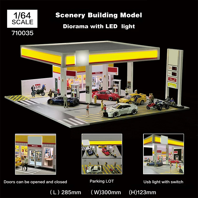 1:64 Scale Diorama Car Garage Model With LED Lights Parking Lots City DIY Model Sets Can Be Combined...