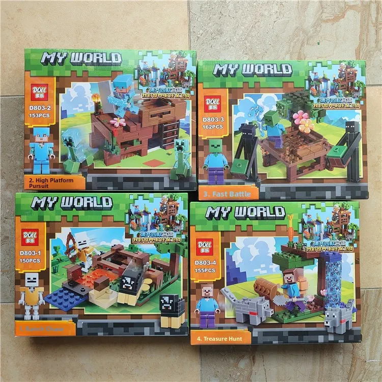 My World Building Blocks Set 4 Boxes Ranch Treasure Hunt Doll 803 Boys Girls Gift Children Toys Plas...