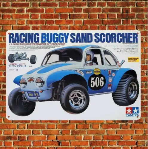 1r,Metal Poster Vintage Rc Car Tin Sign Plaque Tamiya Buggy Sand Scorcher Boxart-metal sign
