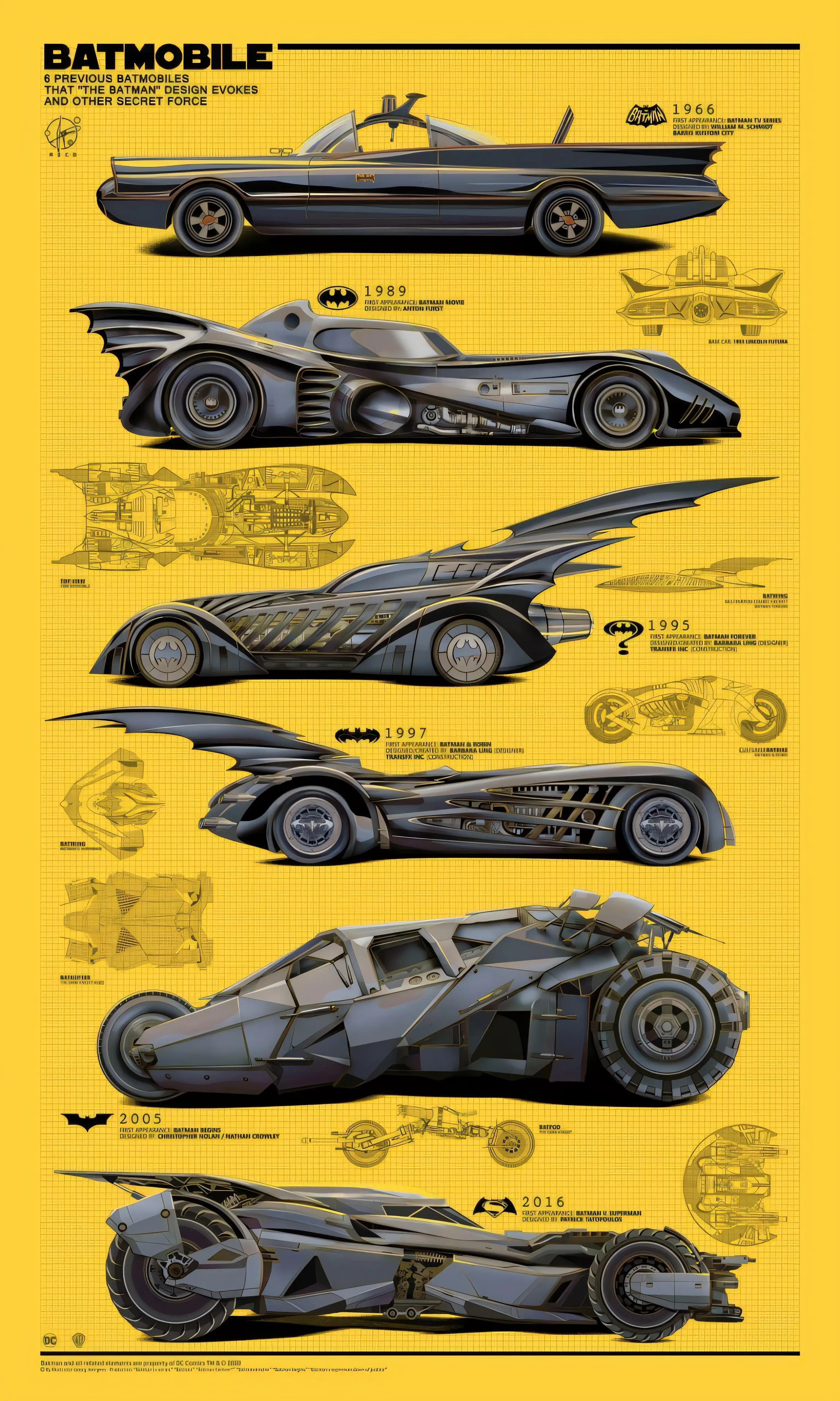 Vintage Batmobile Evolution Tin Sign Poster Aluminum Wall Art Decor 1966-2016 Movie Collectible