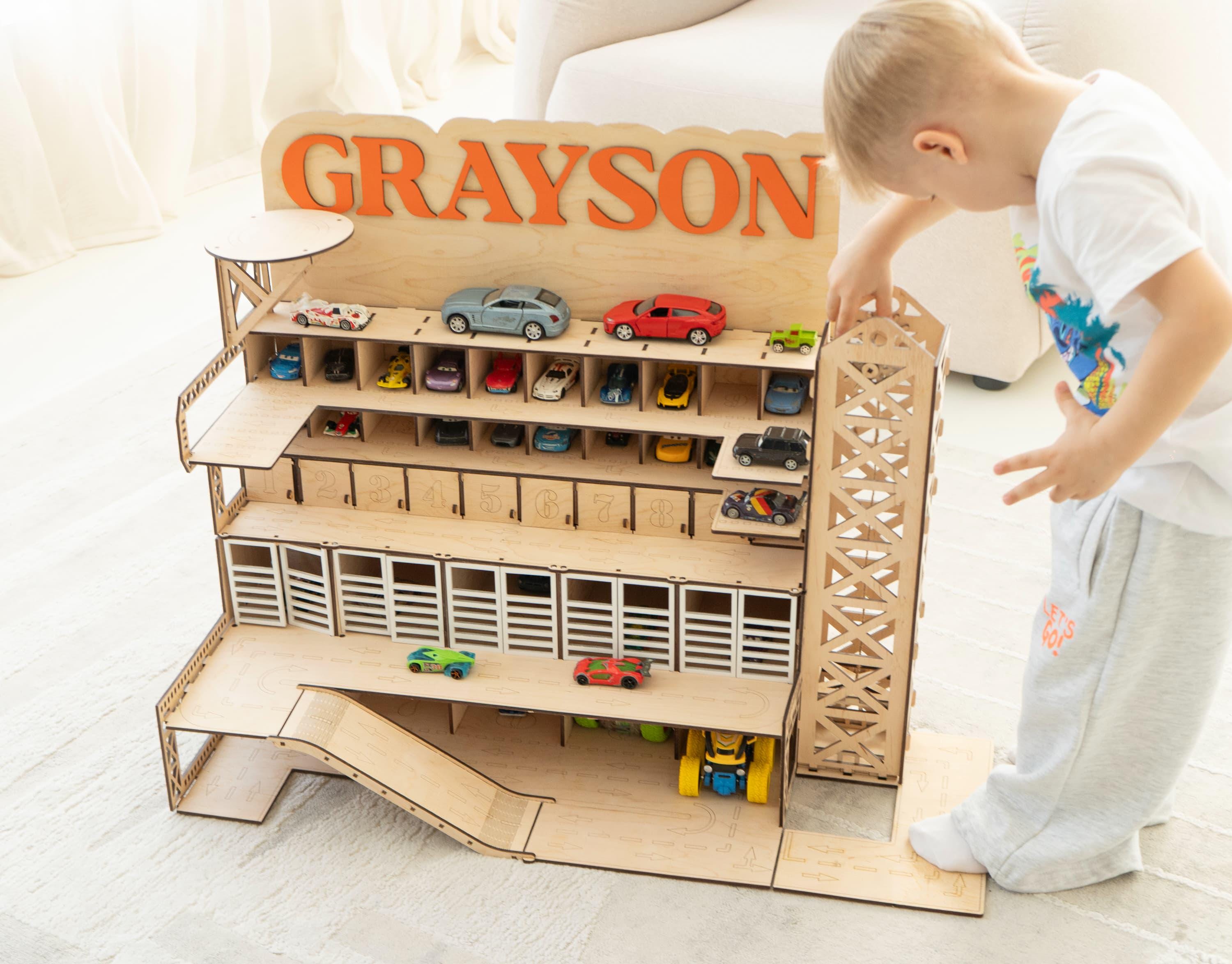 Name Garage Toy for Boys, Wooden Parking Garage for Car Toy, Custom...