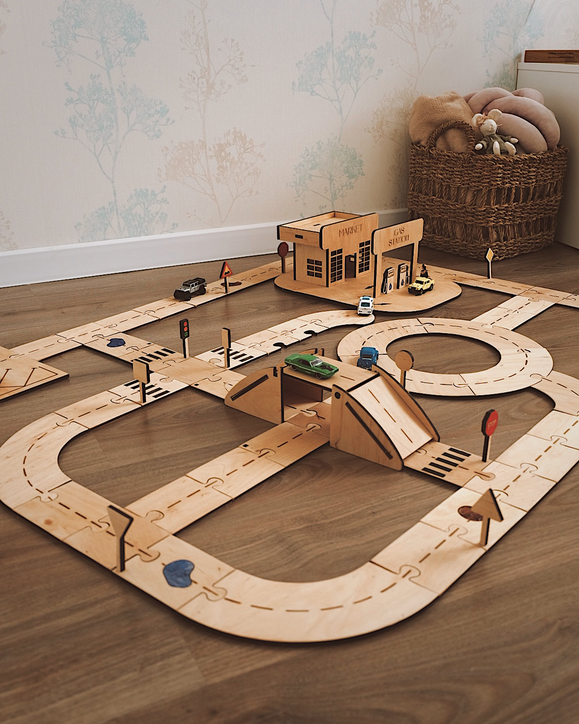 "Wooden Road Track & Buildings - Montessori Play Set A natural, safe, customizable wooden r...
