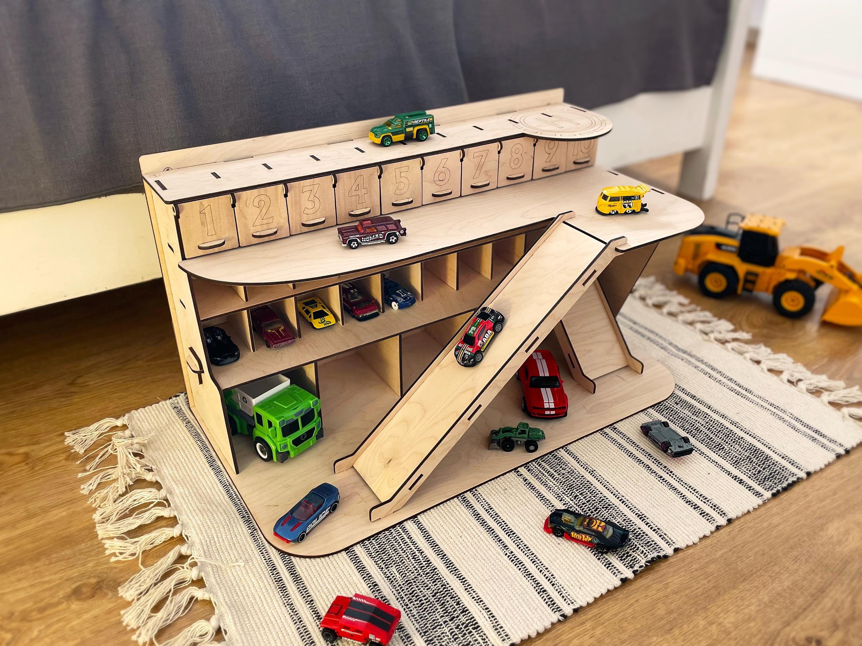 Toy Car Garage, Personalized Eco-Friendly Wooden Toy Garage with Sl...