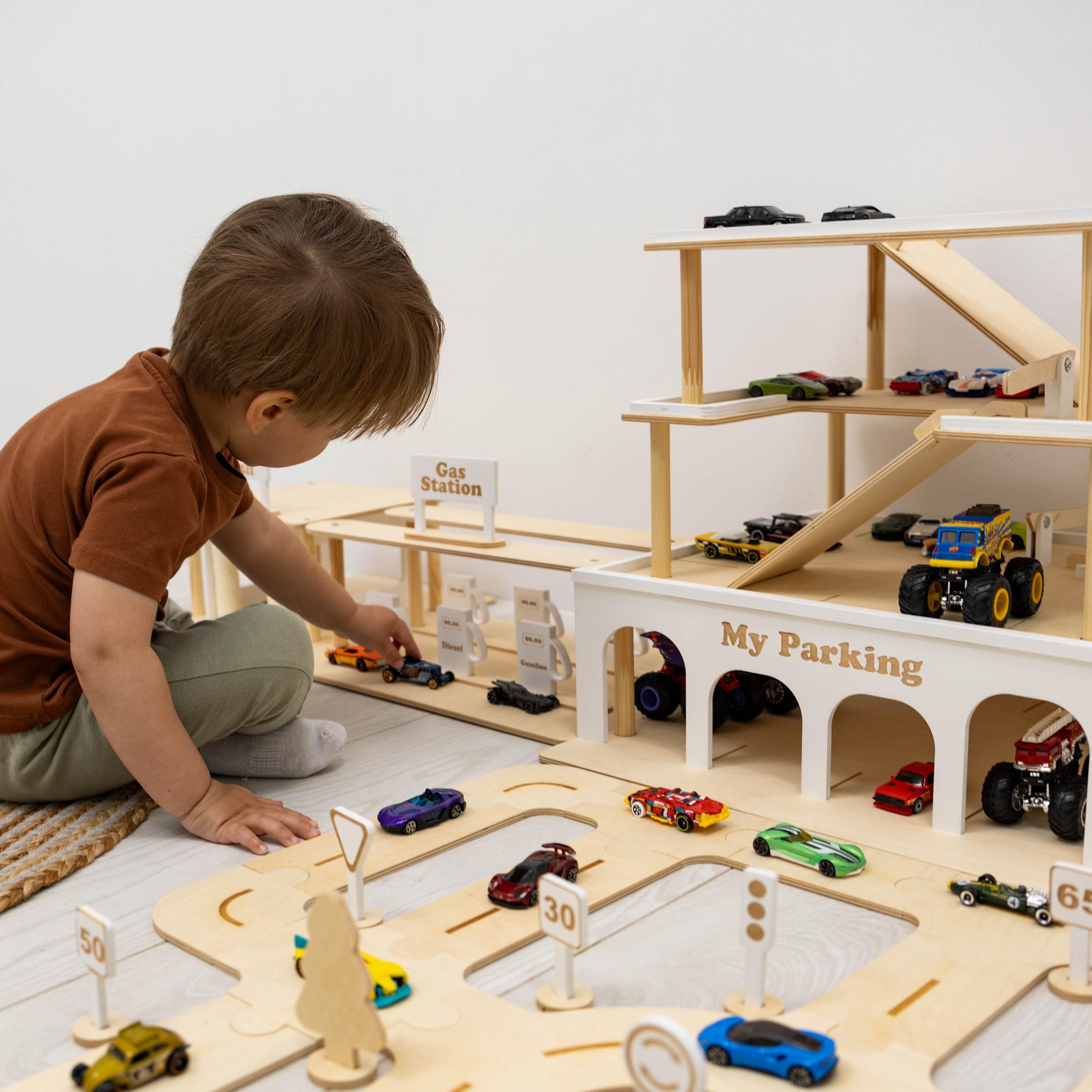 Toddler Boy Wooden Toy Car Garage, Toy Cars with Toy Car Wash, Toy ...