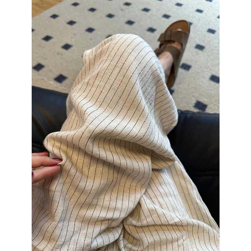 Elegant Striped Wide Leg Pants Women Fashion Streetwear Cotton Linen Baggy Pants Summer Ladies Korea...