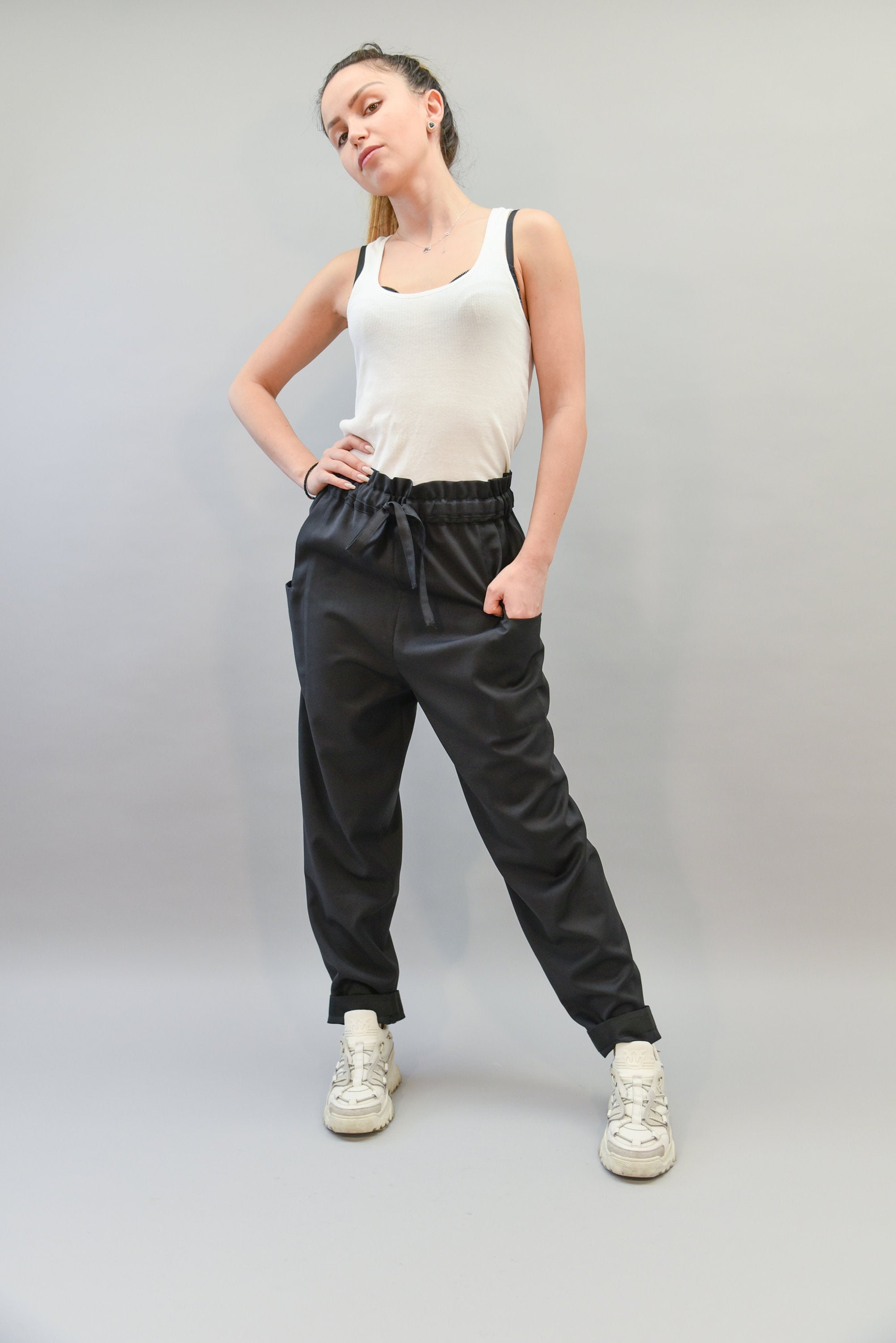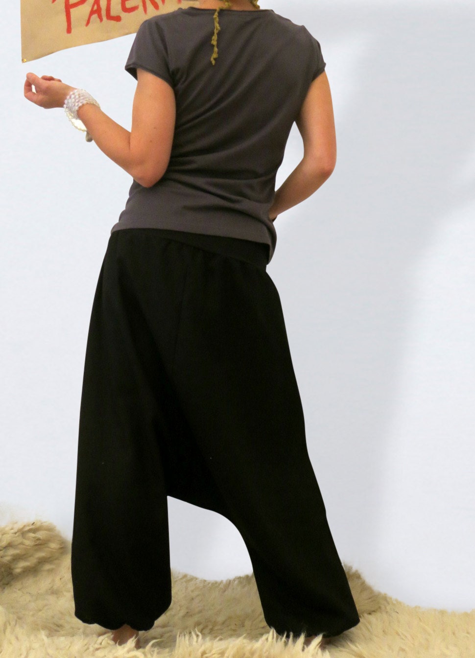 Black Harem Pants, Drop Crotch Pants, High Waist Pants, Loose Pants...