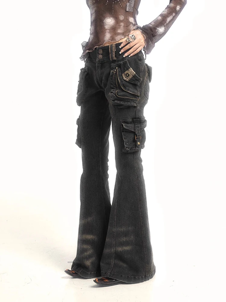 WCFCX STUDIO Women Y2k Cargo Pants Harajuku Retro Flare Jeans Stree...