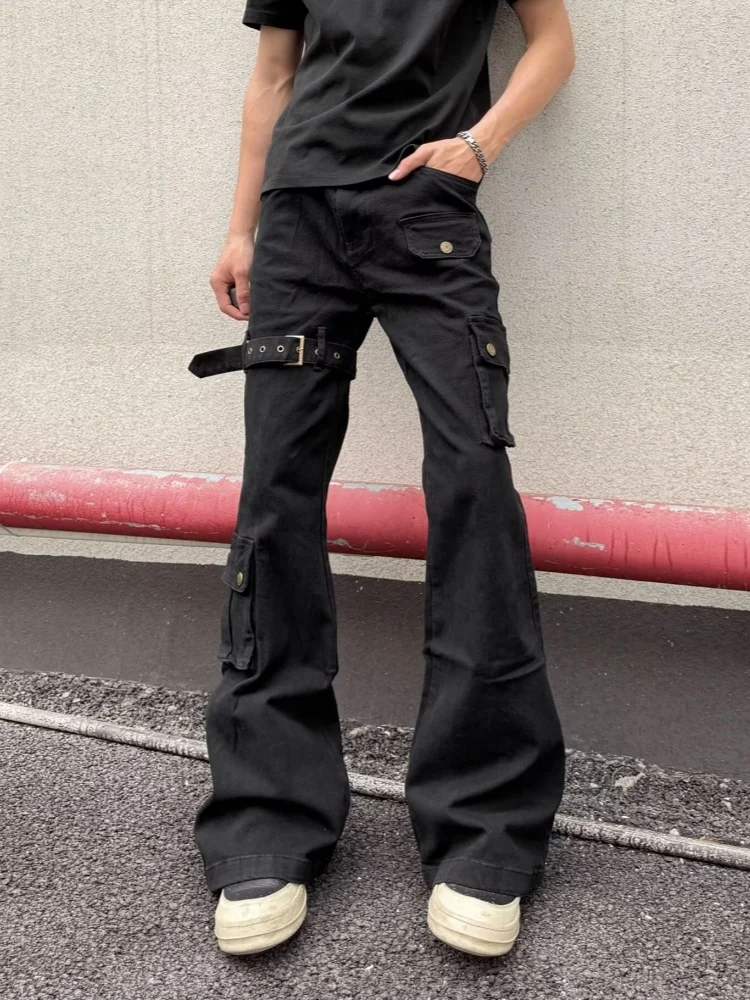 2025 Ropa Y2K Style Black Slim Flare Cargo New Jeans Pants For Men ...