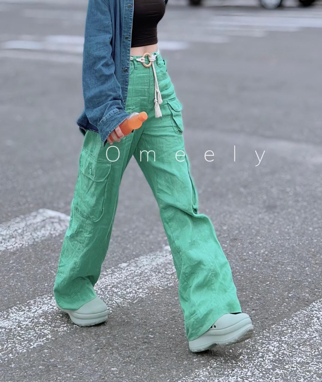 Cargo Linen Pants Pocket Straight High Waist Linen Pants With Belt ...