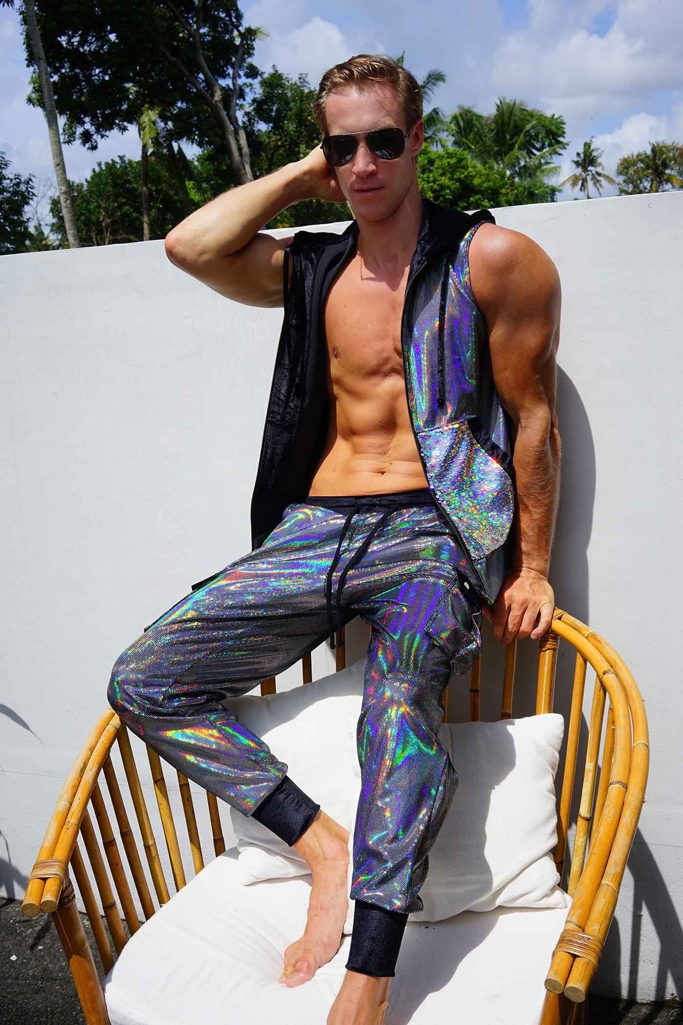 Cargo Pants Rave Pants Holographic clothing Silver pants Festival P...