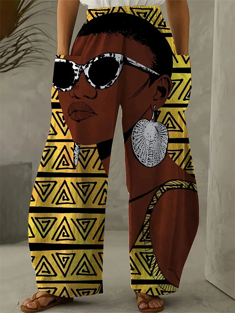 New Fall Women's Large Size Pants Fashion 3d Abstract Human Face Printed Pants Casual Hip Hop Wide L...