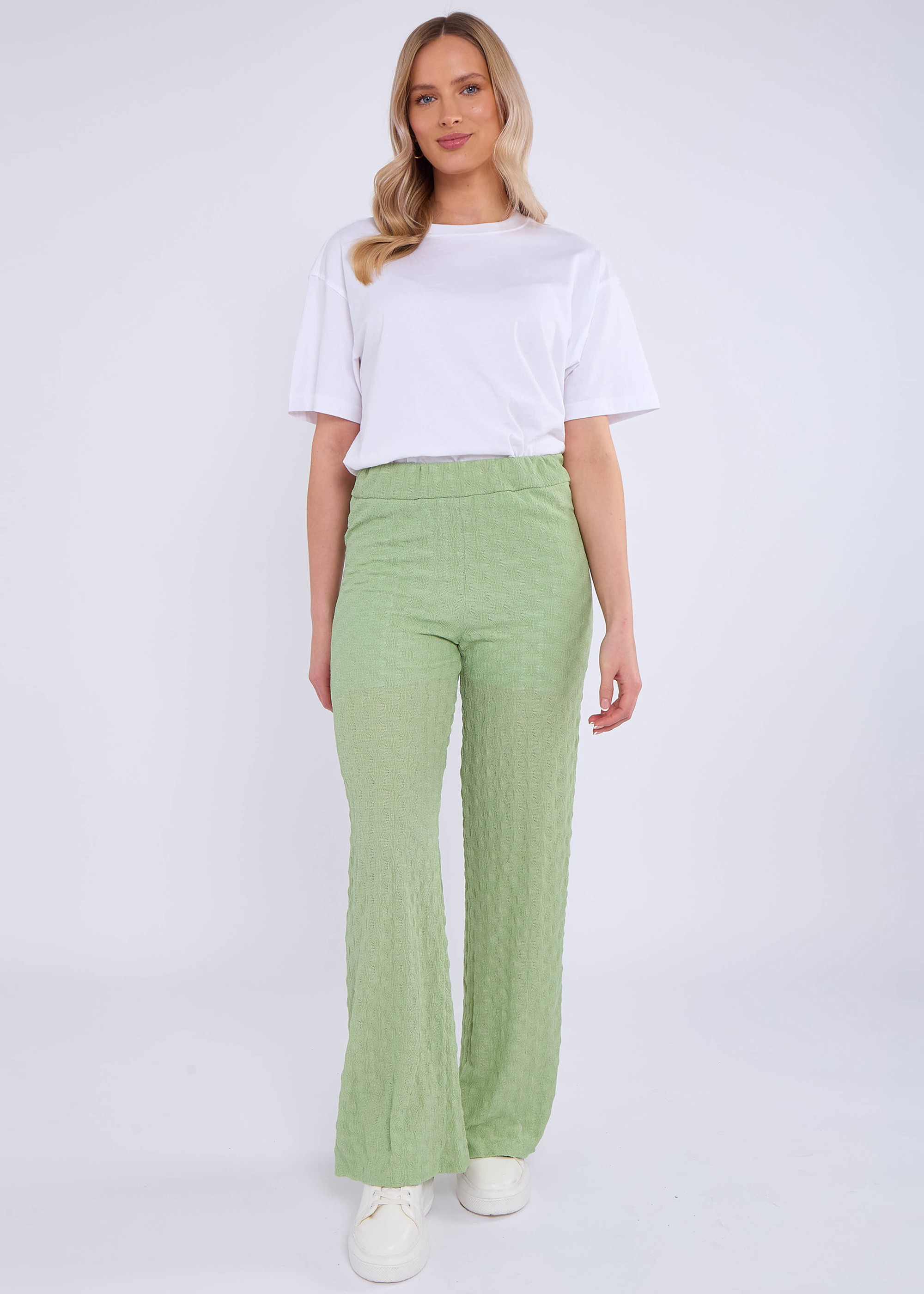 Gini London Womens Sage Green Textured Elasticated Waist Flared Tro...