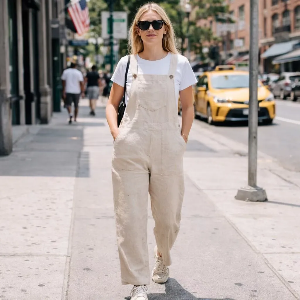 Women's Jumpsuits Custom-made Loose Linen Casual Cargo Pants Halter...