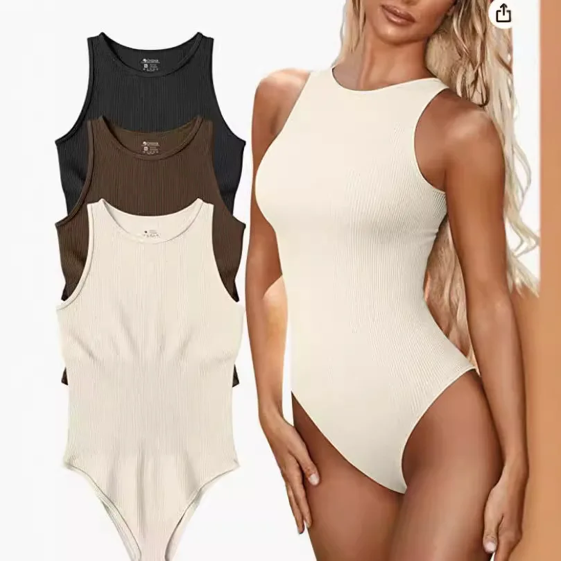 Wholesale Women Summer Tight Fitting Jumpsuit Solid Color Sleeveles...