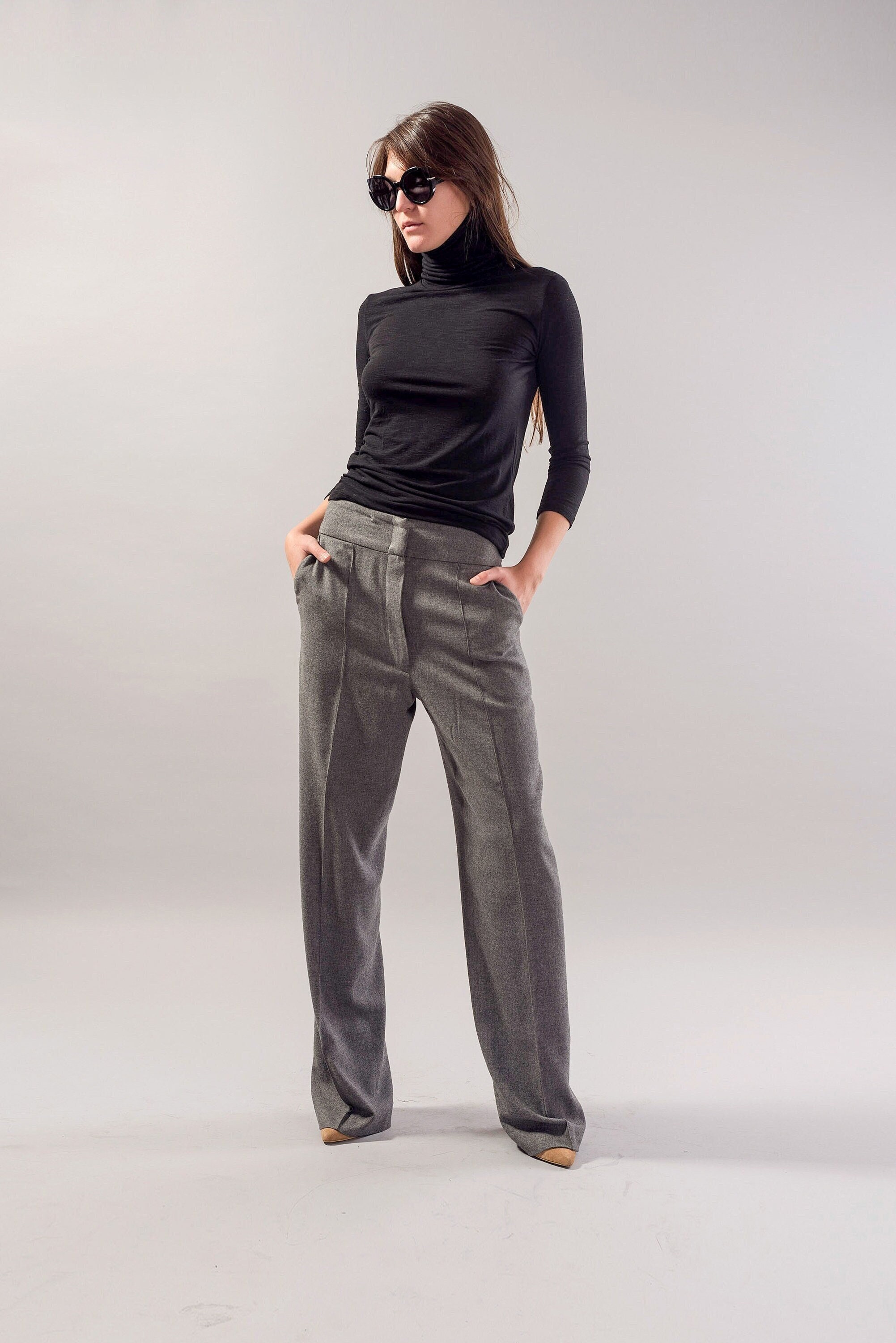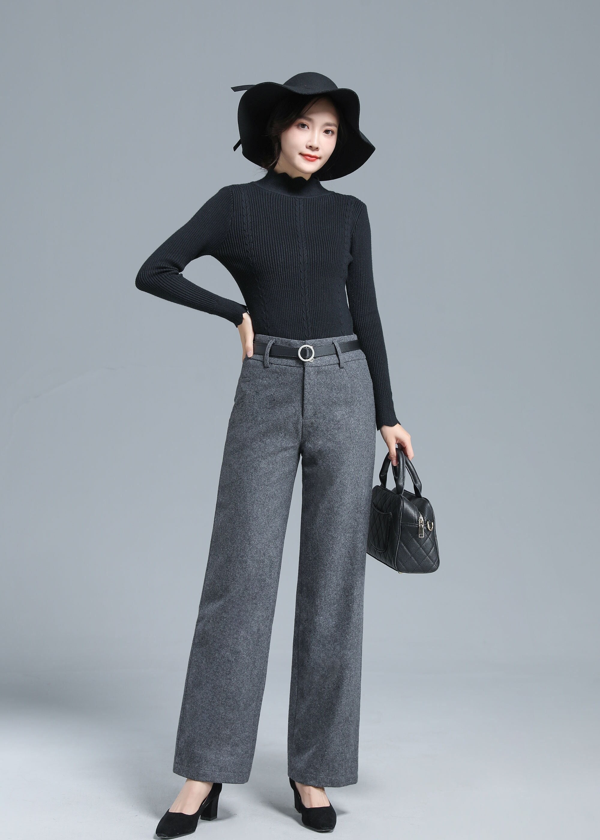 Warm Wool Long Pants, Winter Straight Leg Pants, High Waist Pants, ...