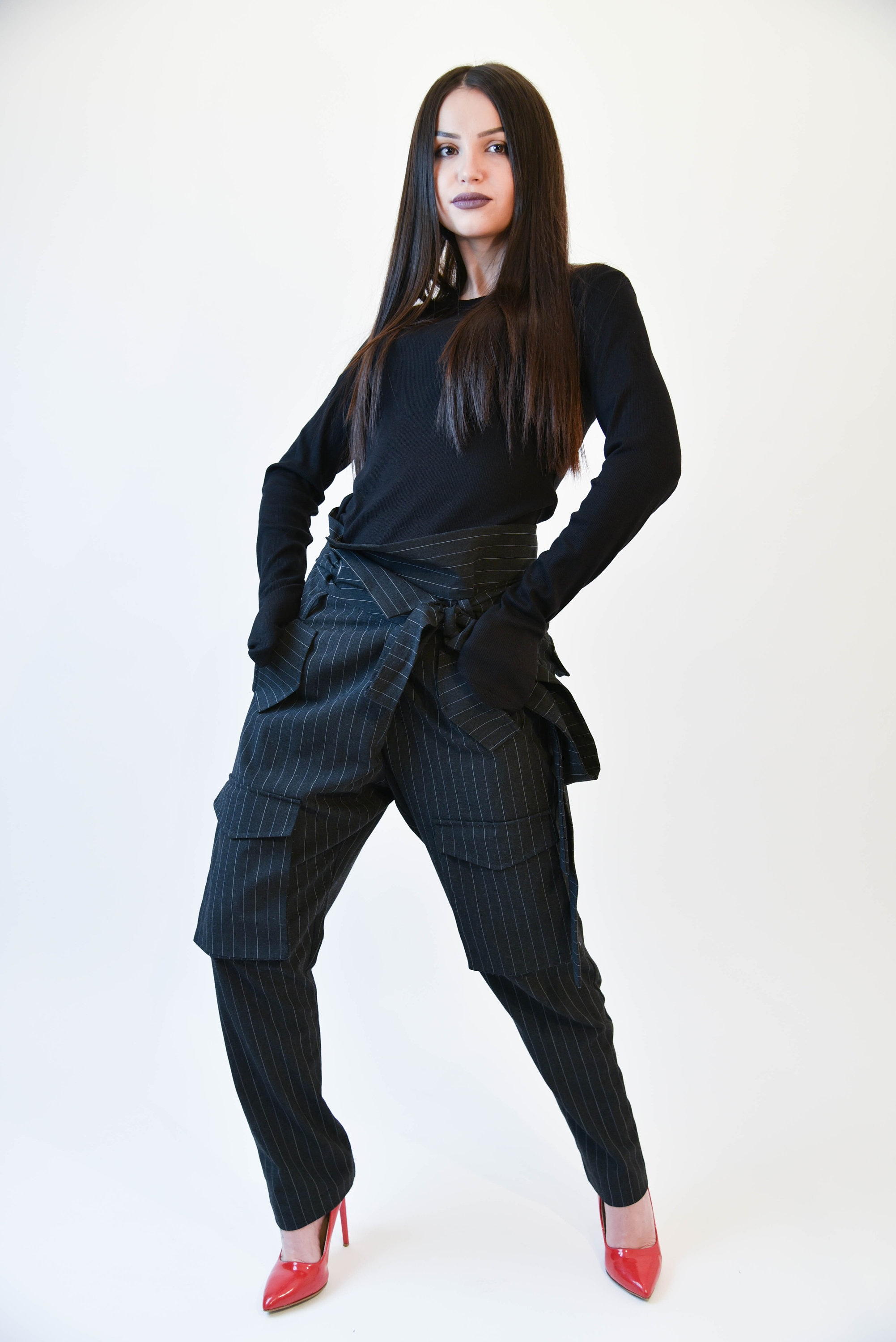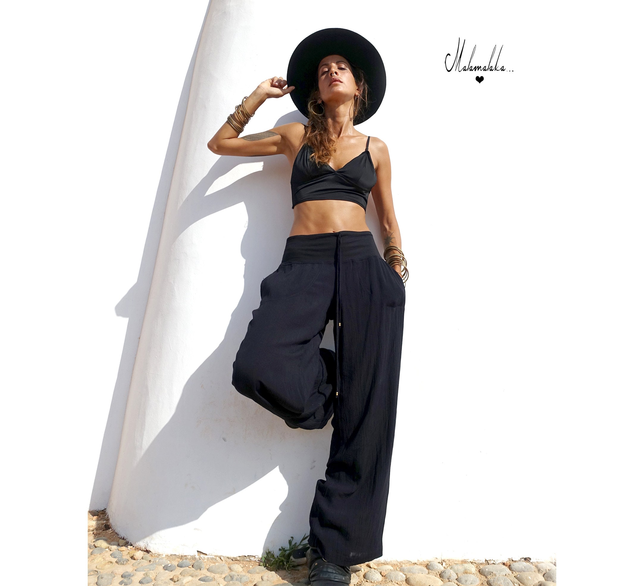 Tapered Pants/Loose Black Pants/Casual Drop Crotch Pants/Wide Leg P...