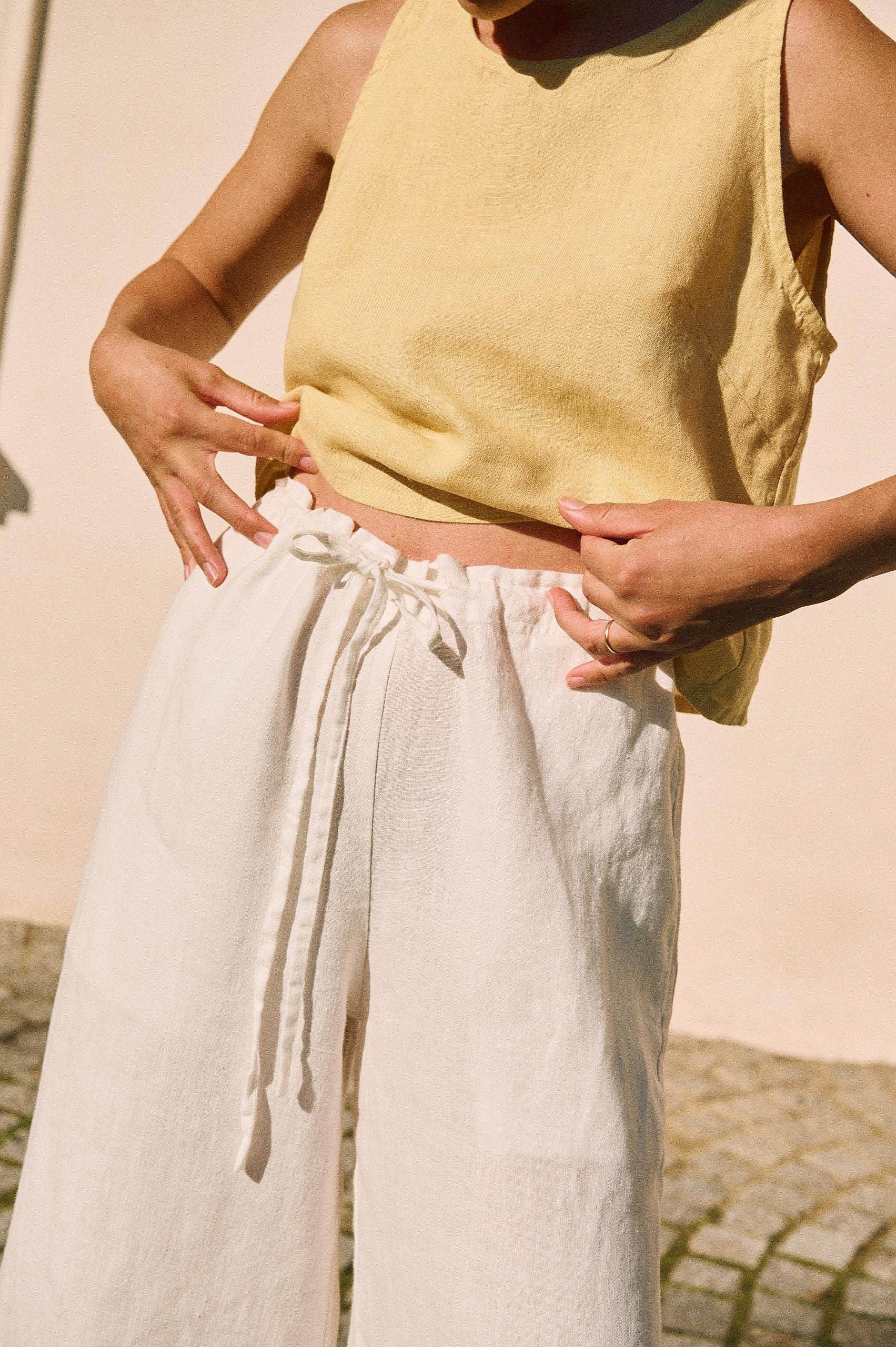 Robbie drawstring linen pants - Milky white pants - Relaxed pants -...